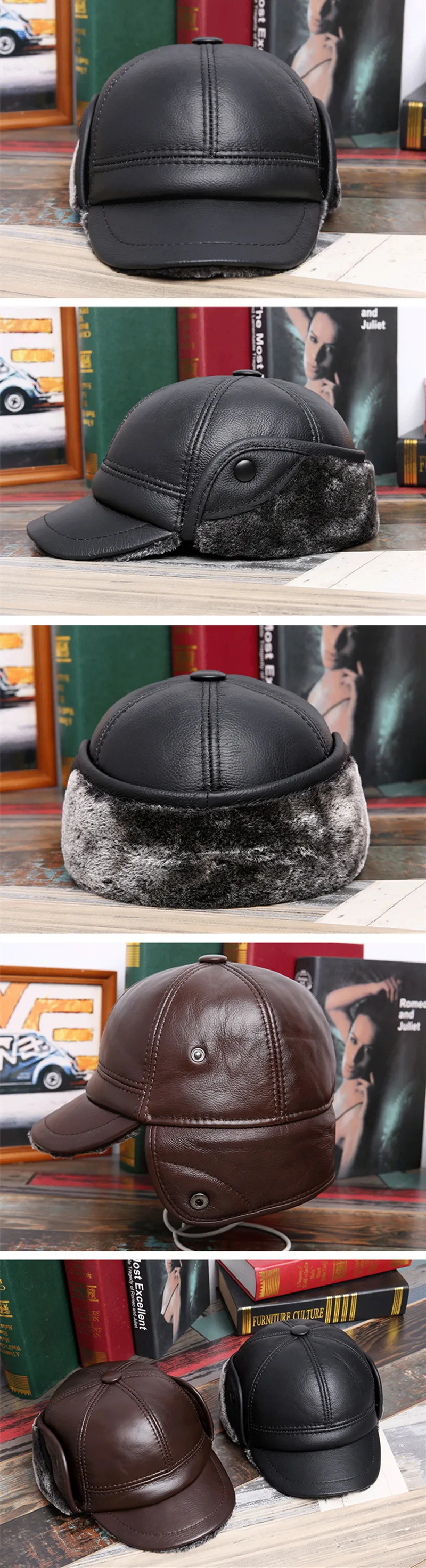 SILOQIN шапка из натуральной кожи зимние теплые наушники береты муж...