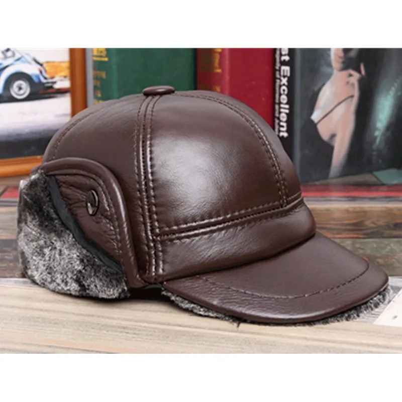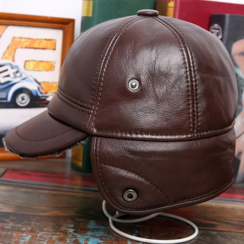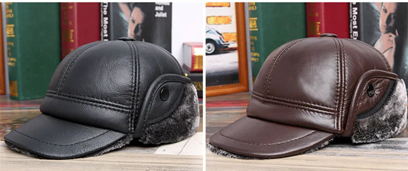 Мужская Утепленная бейсболка из воловьей кожи, зимняя утепленная кепка для защиты ушей, 2022