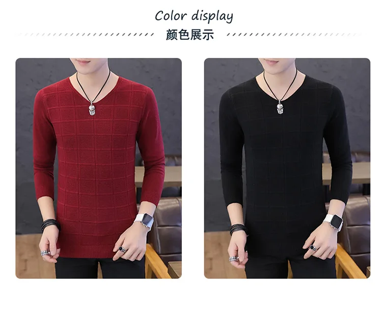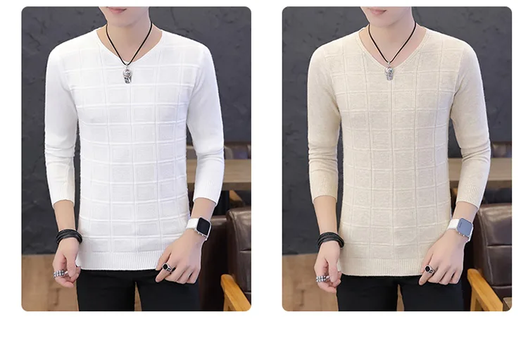 Свитер мужской с длинным рукавом, трикотажный пуловер с V-образным вырезом, облегающая Повседневная простая одежда, на весну-осень, K261