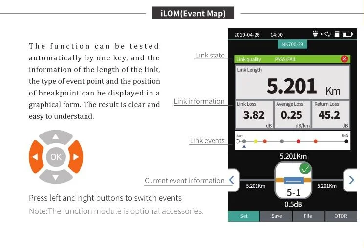 9 функций в 1 устройстве 1) OTDR 2) карта событий (аналогичная EXFO iLOM) 3) Оптический светильник 4) измеритель оптической мощности 5) Визуальный дефектоскоп 6) RJ45 Ethernet кабель 7) Расстояние кабеля Ethernet 8) Ethernet кабель трекер 9) светодиодный светильник