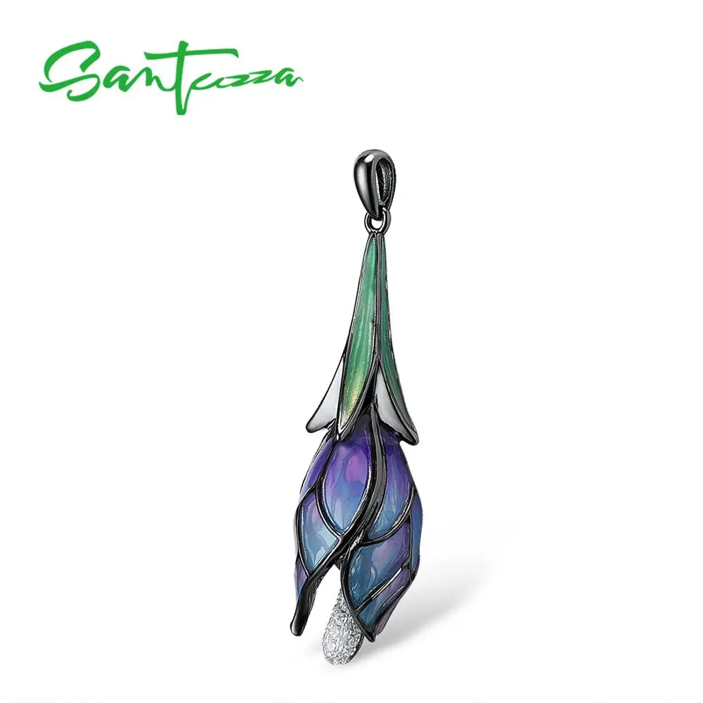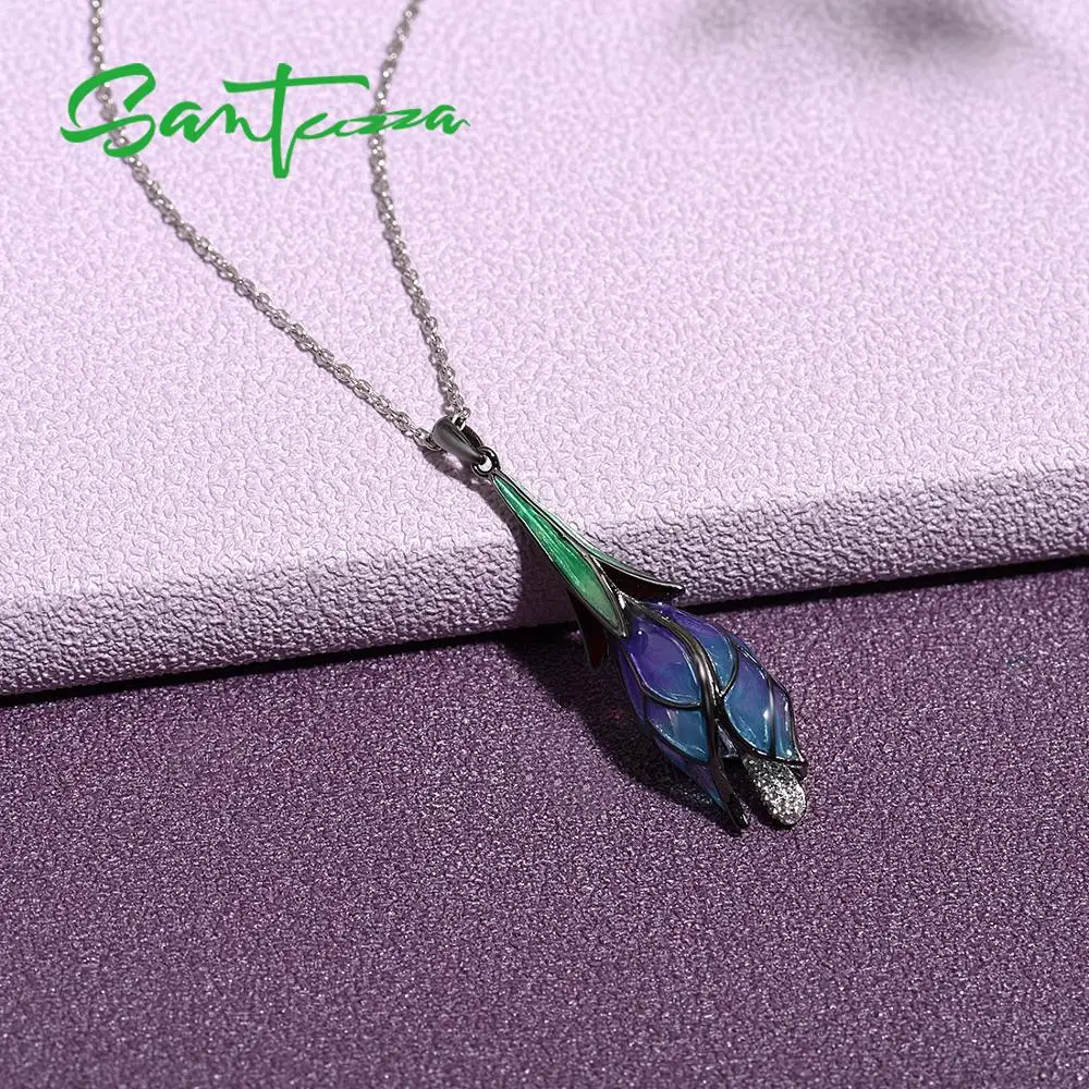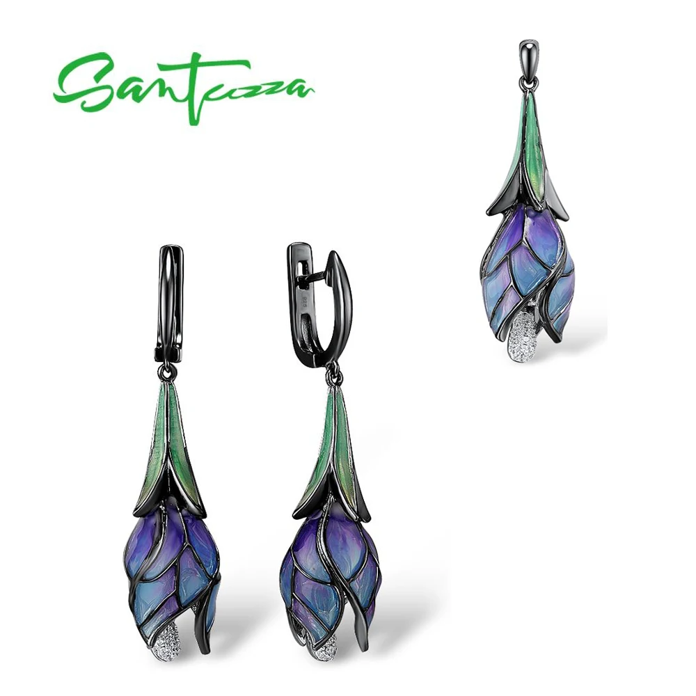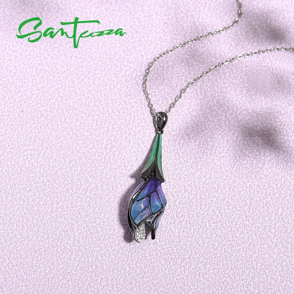 Набор из серебра набор украшений для женщин пробы, с подвеской и фиолетовыми цветами SANTUZZA, эмалевые ювелирные украшения ручной работы