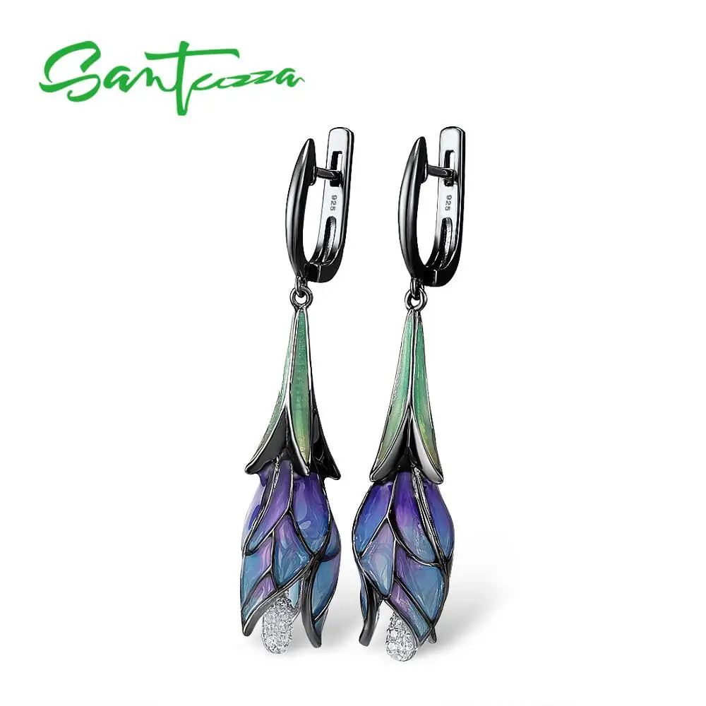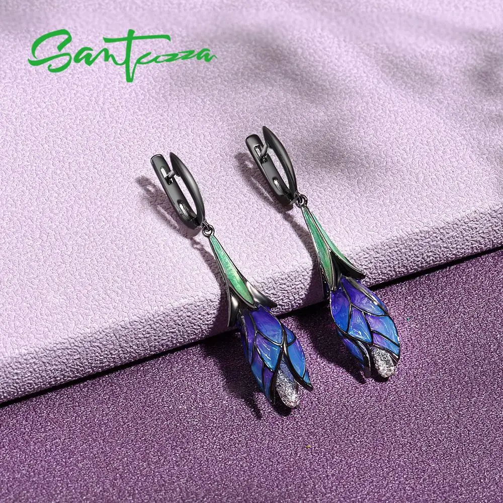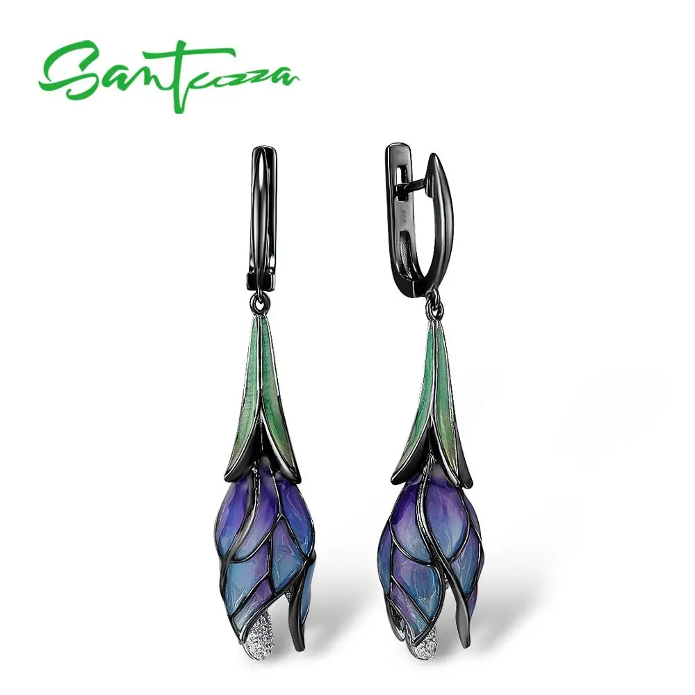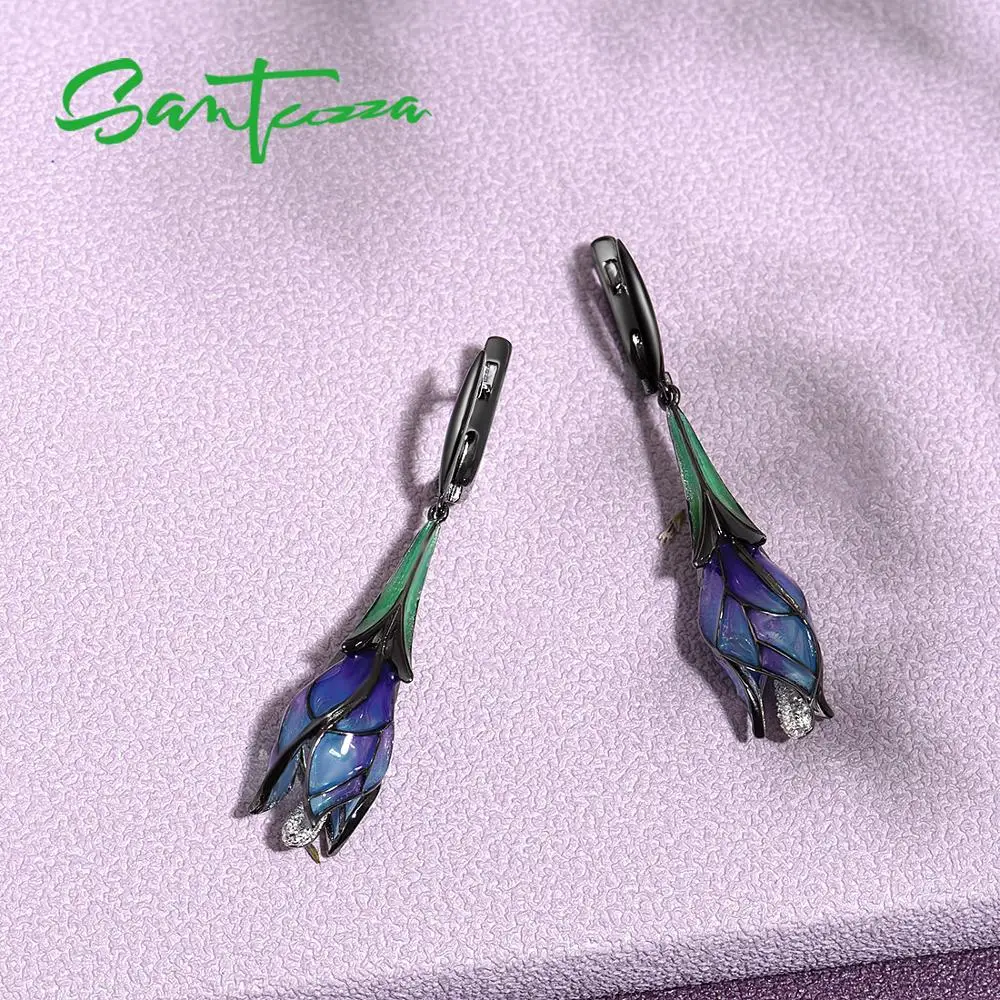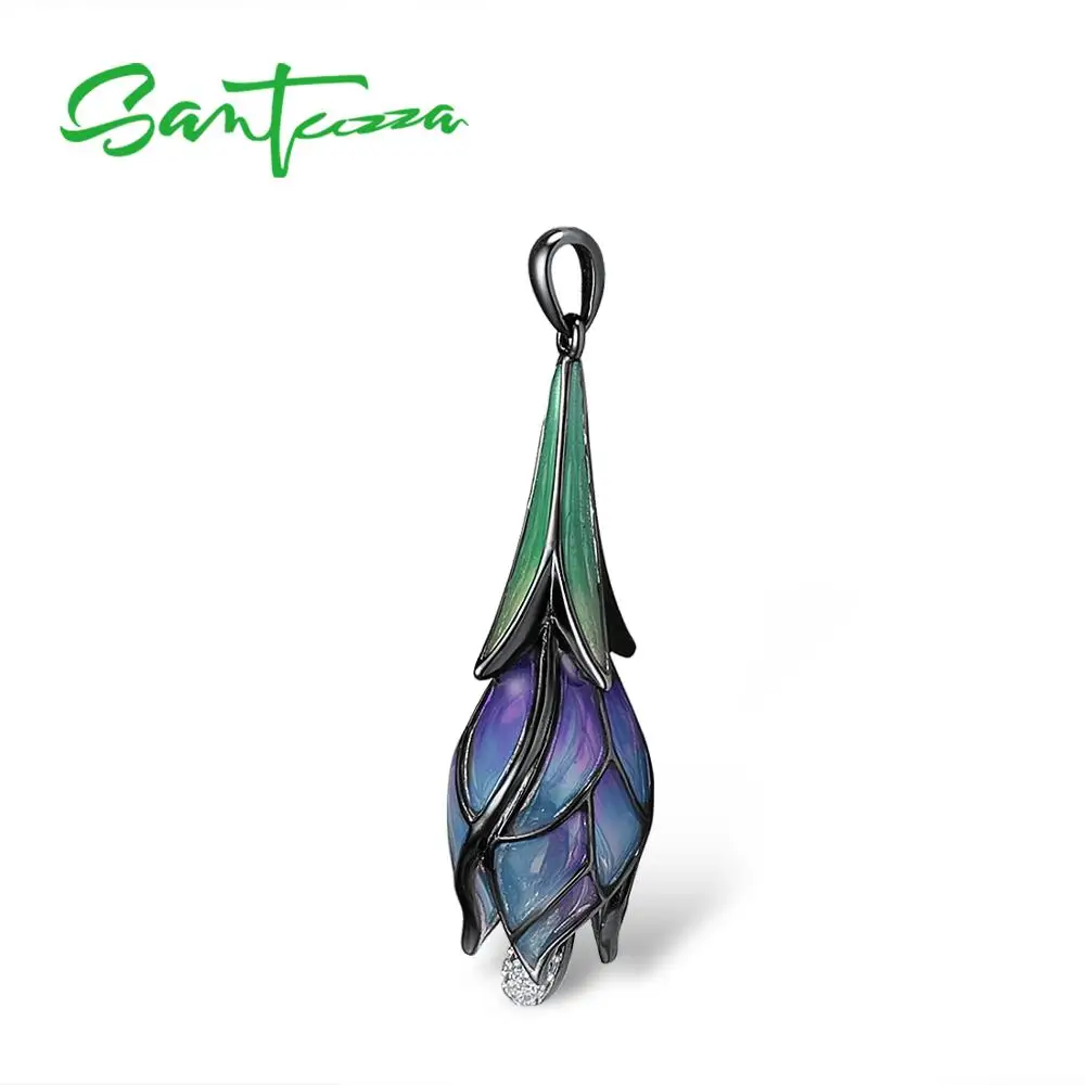 Набор из серебра набор украшений для женщин пробы, с подвеской и фиолетовыми цветами SANTUZZA, эмалевые ювелирные украшения ручной работы