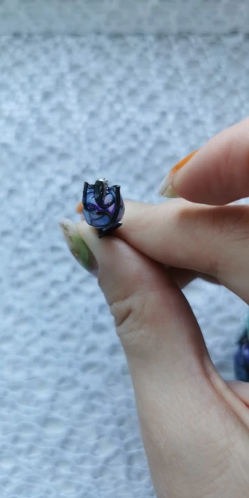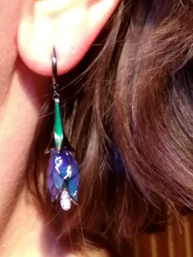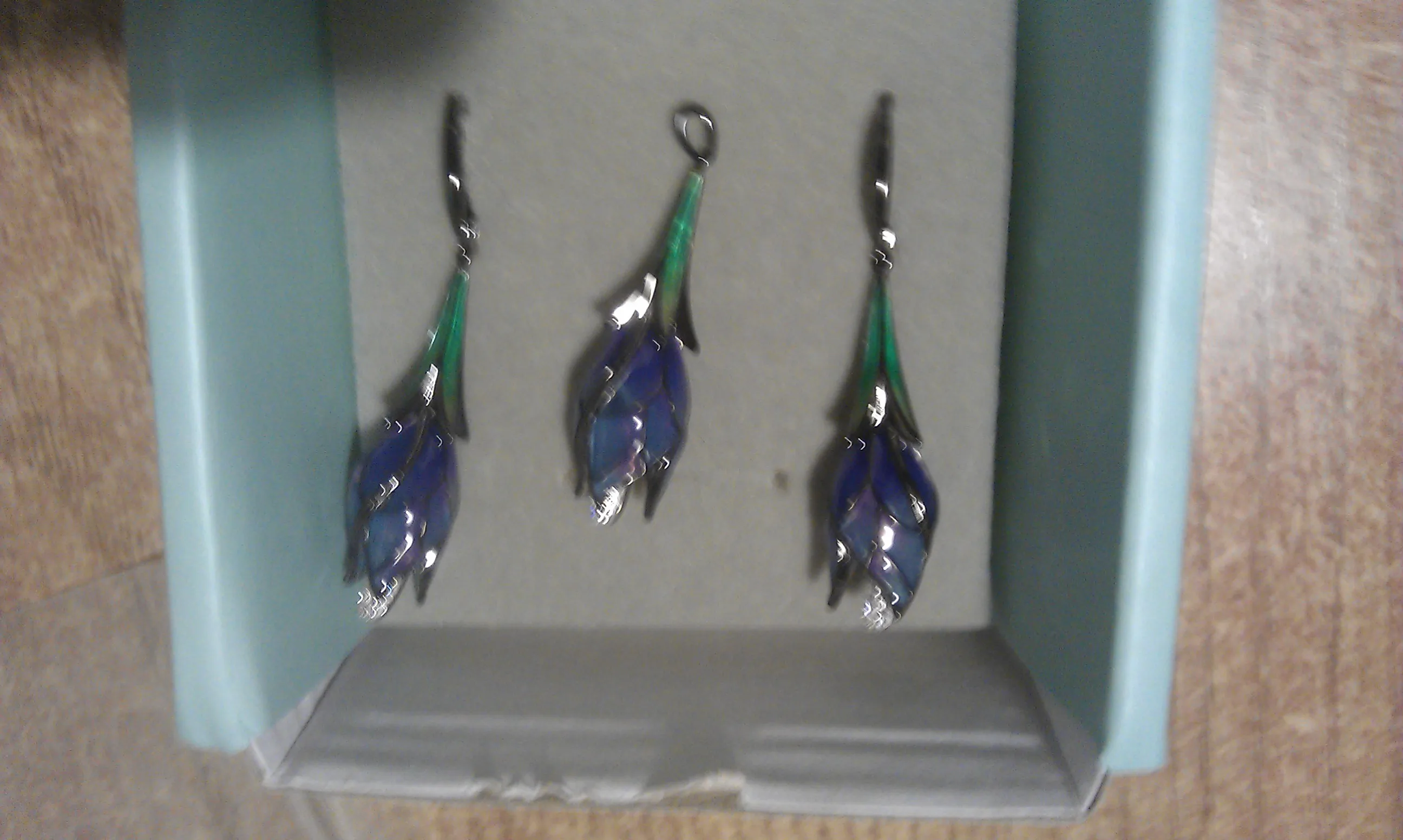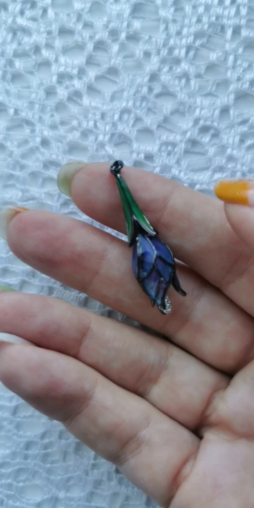 Комплект полностью соответствует описанию, бутон выполнен великолепно - прозрачная витражная эмаль играет на свету переливами цвета! Ушко на подвеске, как уже писали в отзывах, маленькое. Носить буду на шнурке. К заказу продавец приложил стильные серьги, украшенные эмалью. Спасибо, очень приятная покупка!