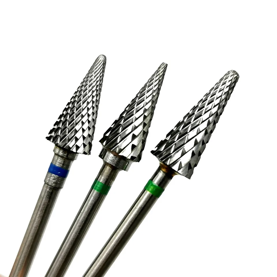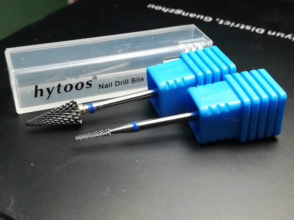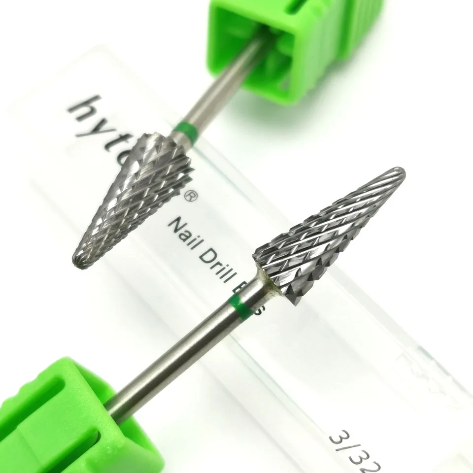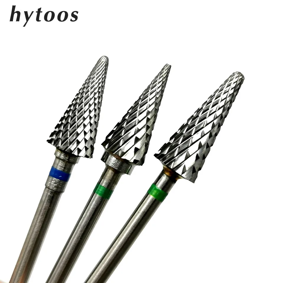 Коническое Карбидное сверло HYTOOS для ногтей 332 дюйма, фреза для маникюра, роторные насадки для ногтей, принадлежности для электрической дрели, инструмент