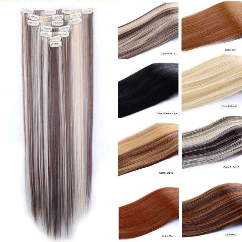 Прямые синтетические волосы jeedou 24 дюйма, 60 см, 100 г, для наращивания волос на заколках, 7 шт./комплект, серый, черный, коричневый, Радужный, Omber цветные шиньоны