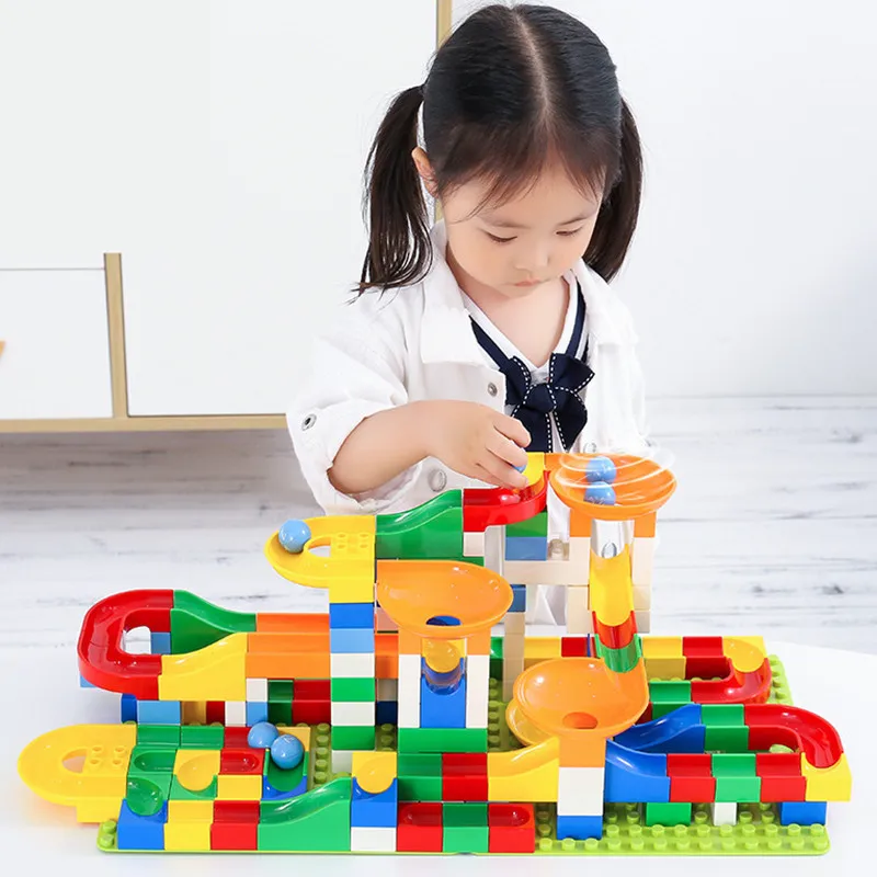 Волшебный мрамор бег "сделай сам" Лабиринт шарики Строительные блоки Друзья Воронка слайд большой кирпич Brinquedos образовательные игрушки для детей
