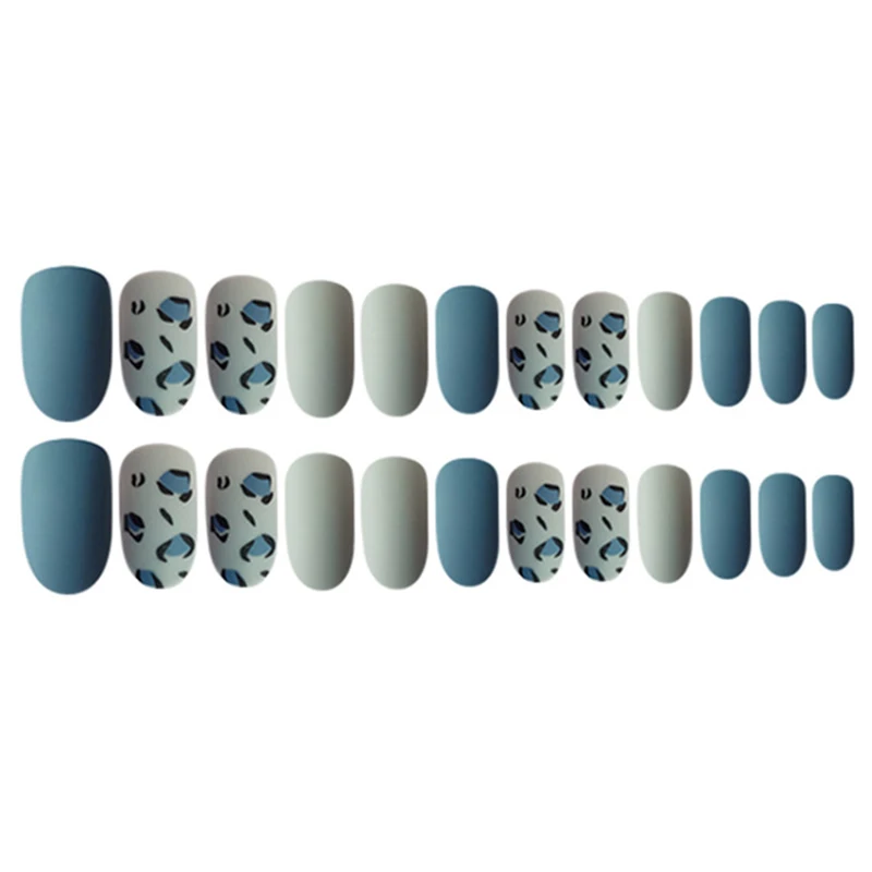 24 шт./компл. европейские матовые накладные ногти полностью законченный синий Леопардовый узор накладные ногти Красота искусственные полное покрытие ногтей советы