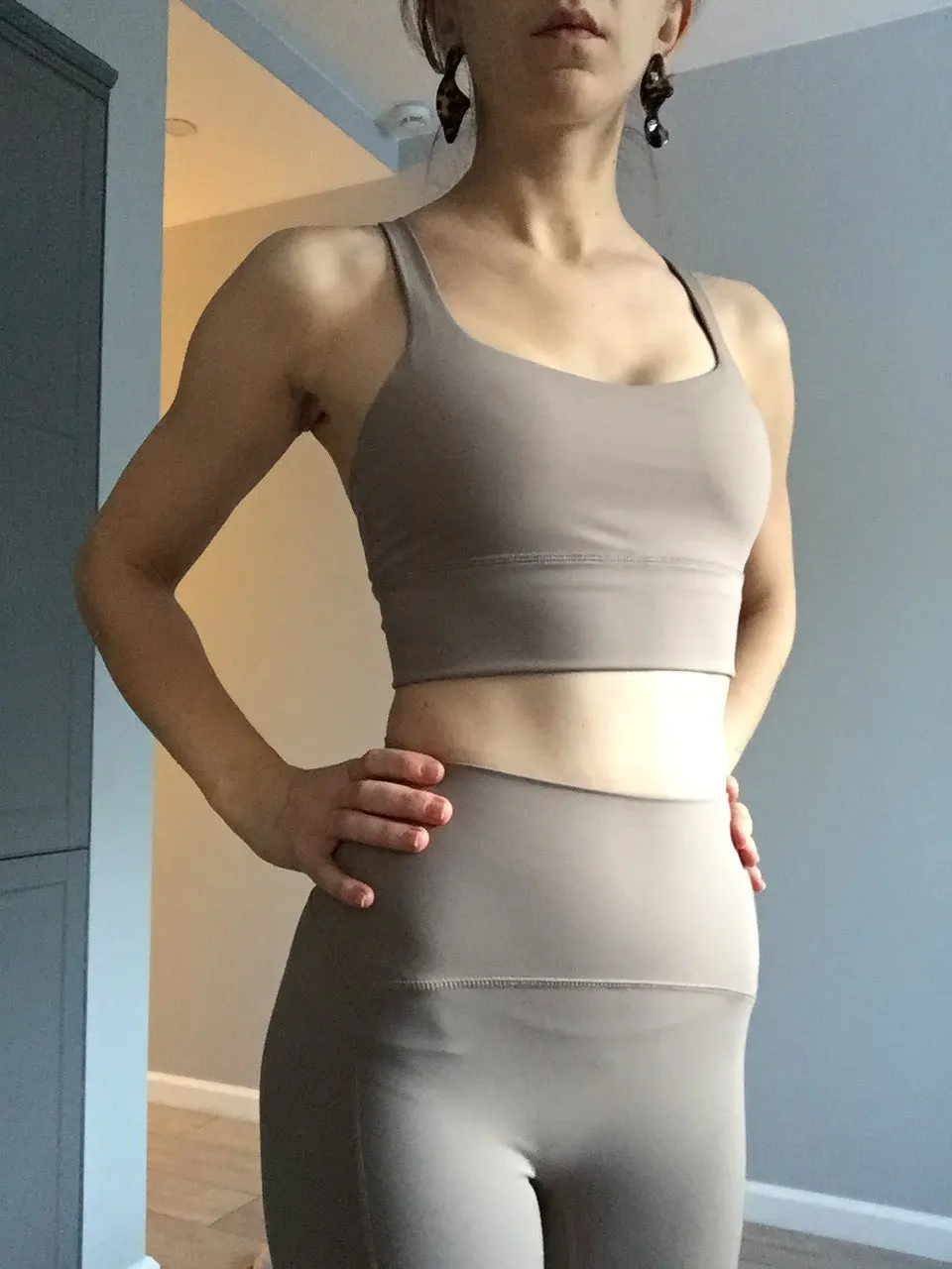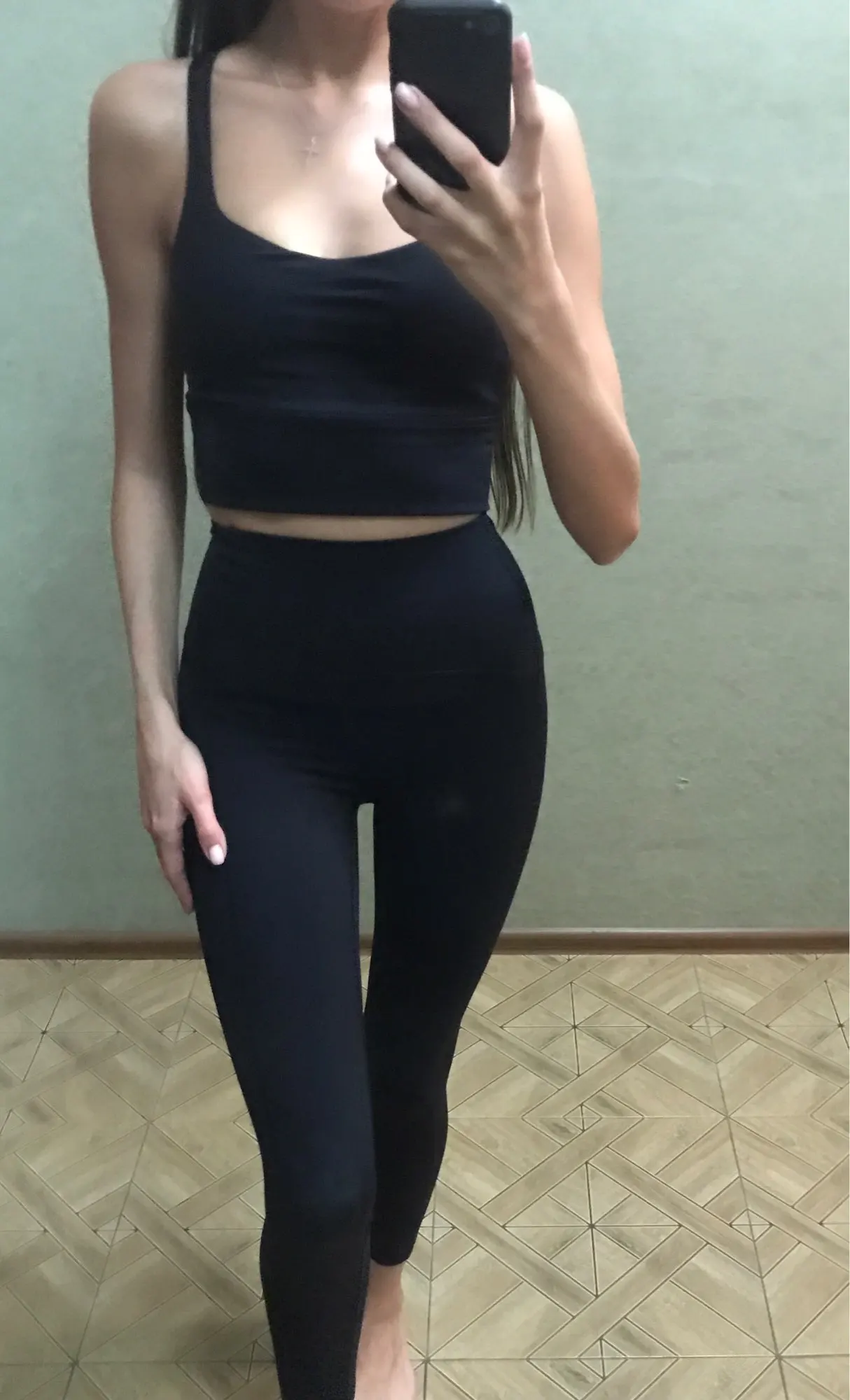Хорошее качество. Идеальный размер топа, но Леггинсы могут быть на несколько см длиннее на мой рост 170 см.