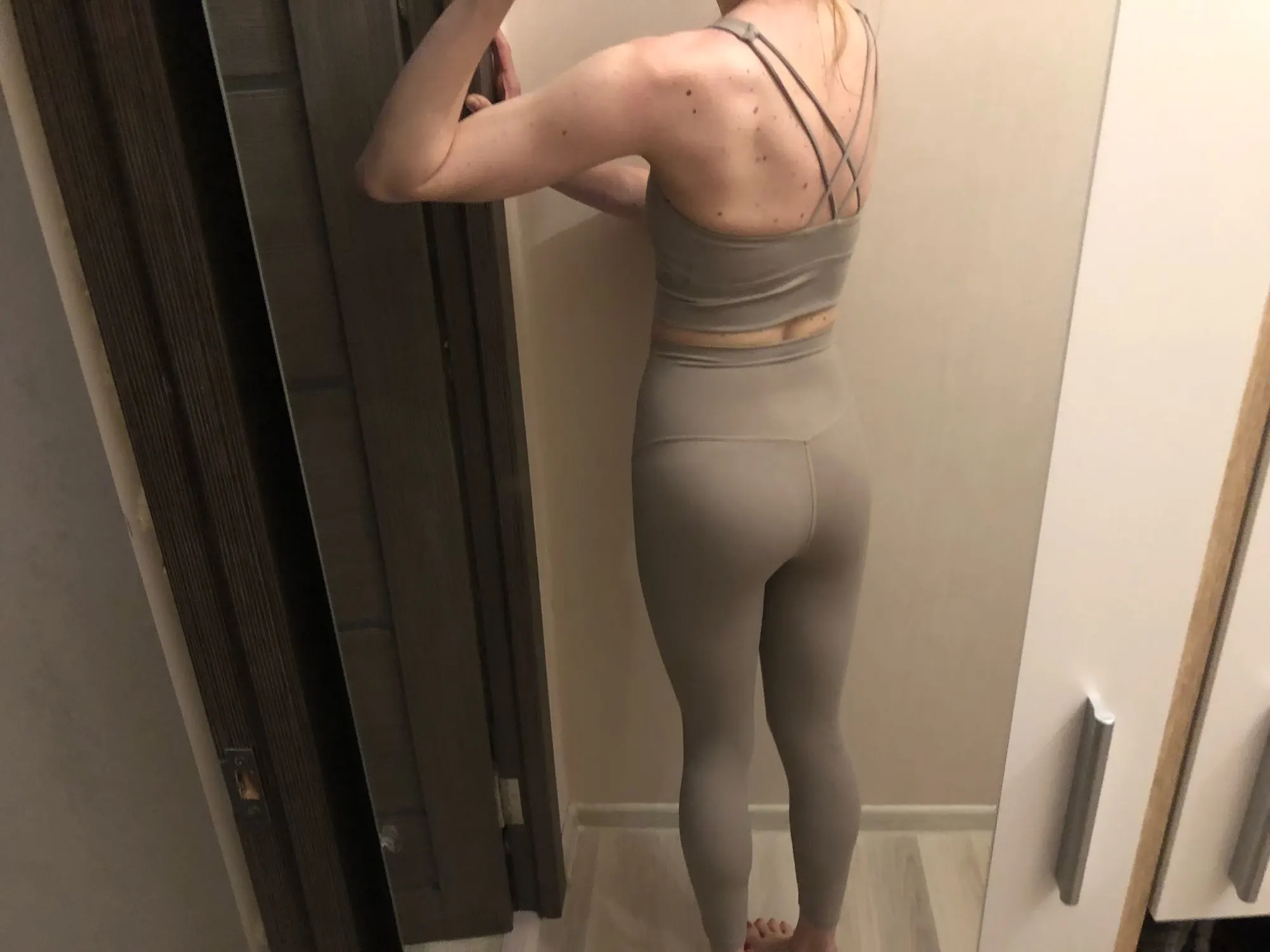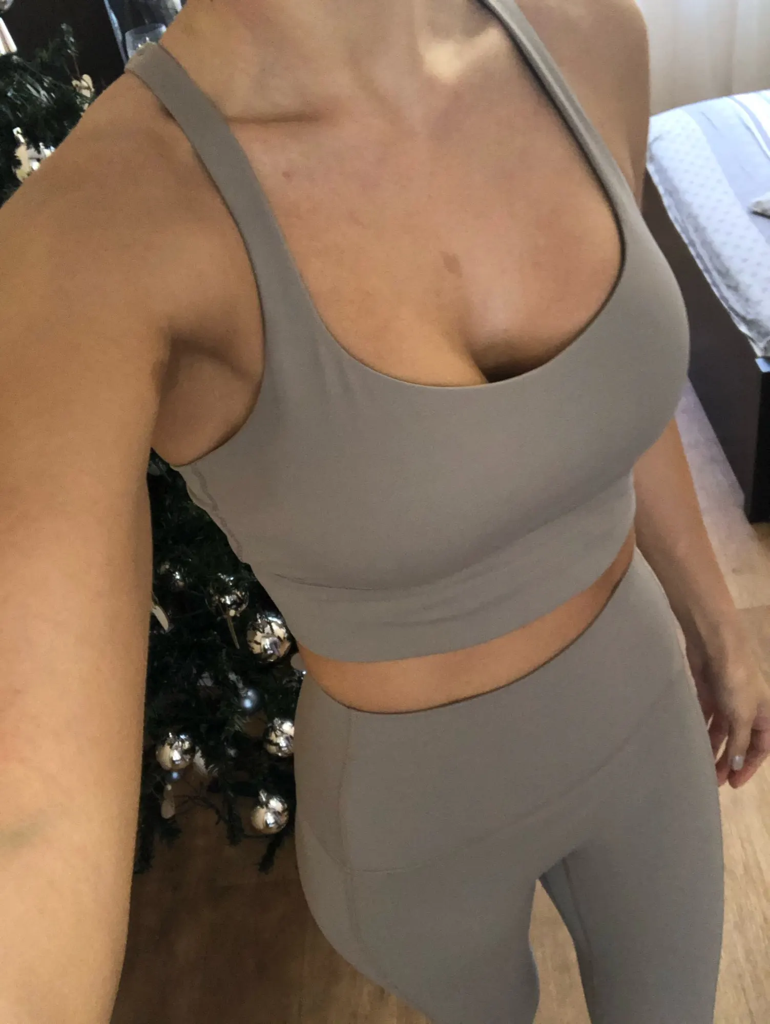 понравился цвет и материал комплекта, заниматься йогой удобно, из минусов - топ топорщится на спине, тут кто-то уже писал об этом, хотя с размером всё хорошо, не велик