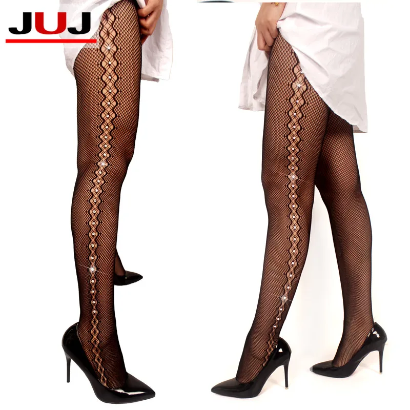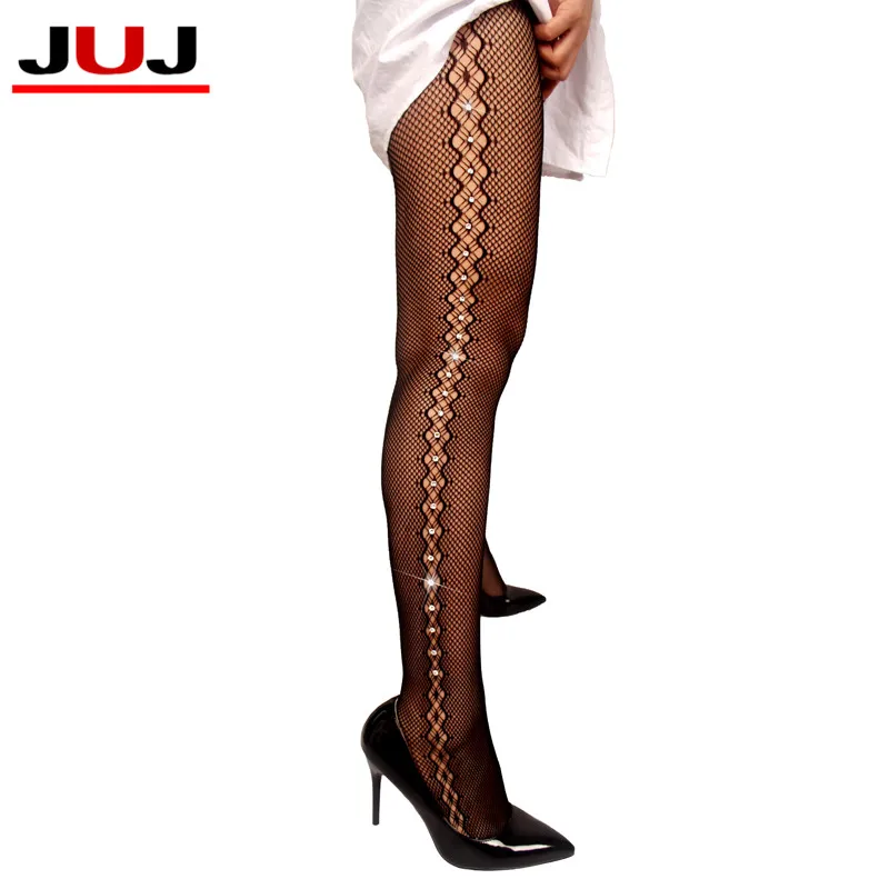 Женские сексуальные колготки со стразами Стразы, сетчатые блестящие колготки, однотонные женские облегающие летние модные колготки с высокой талией