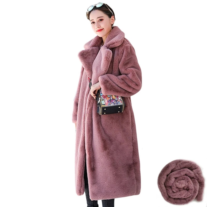 Шуба женская из искусственного меха норки, зимняя, размера плюс, 2021