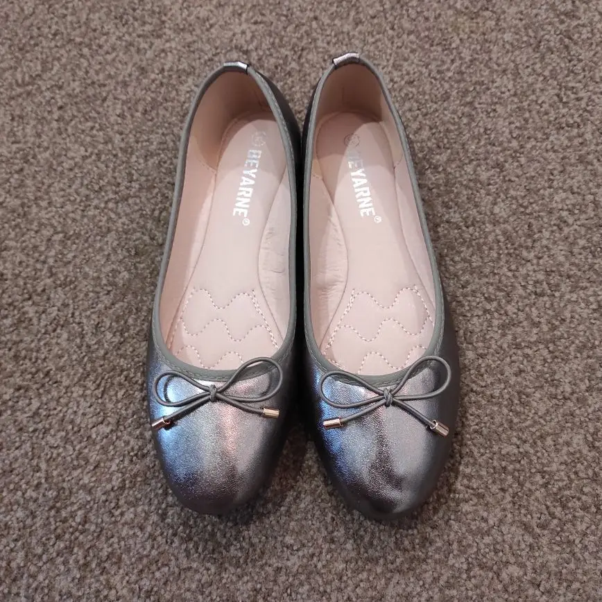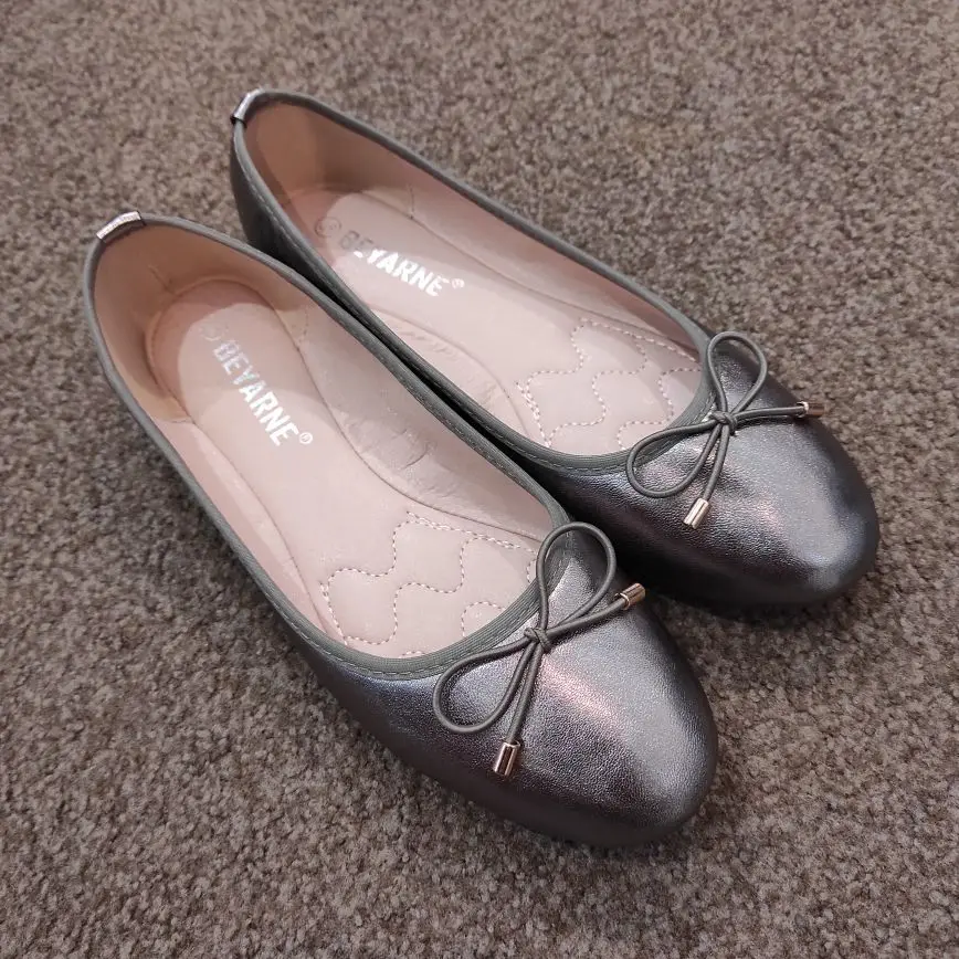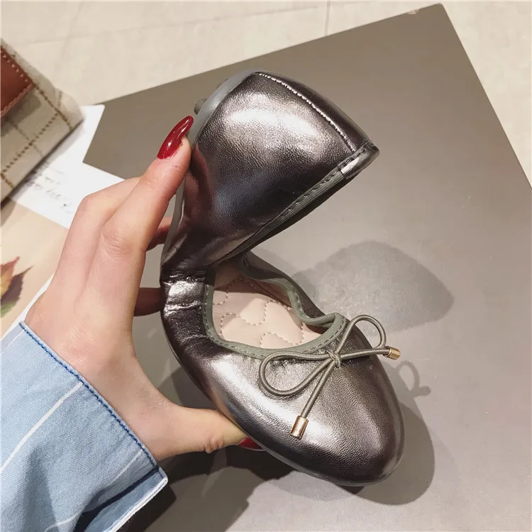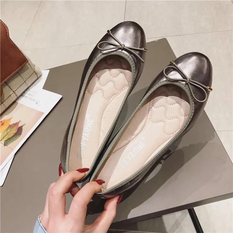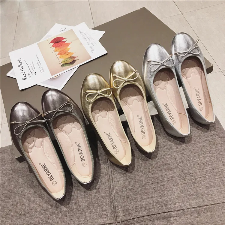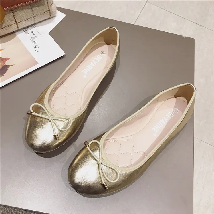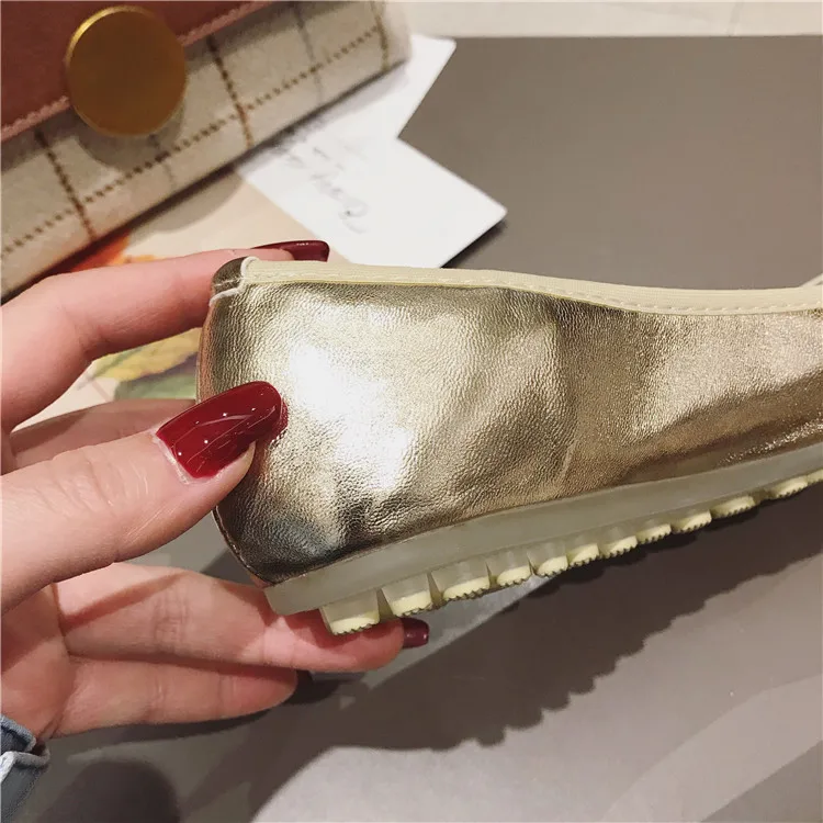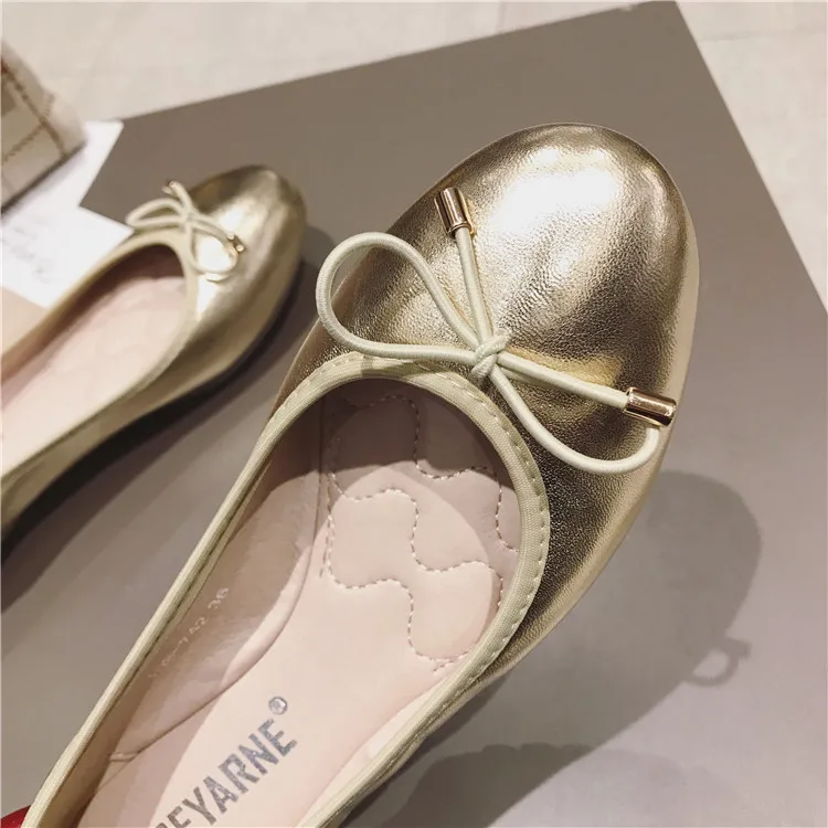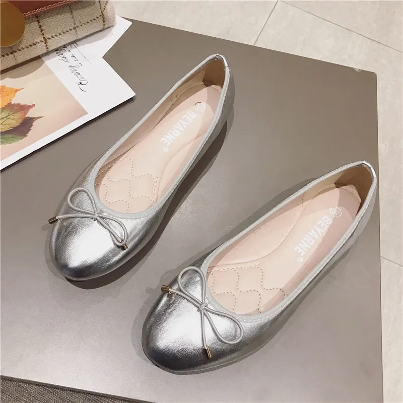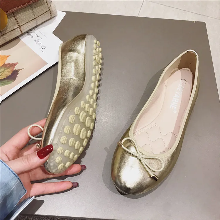 Женские балетки на плоской подошве, с круглым носком, с бантом, серебристые, Золотые балетки, без застежки, лоферы, повседневная обувь, большие размеры 41, водонепроницаемые