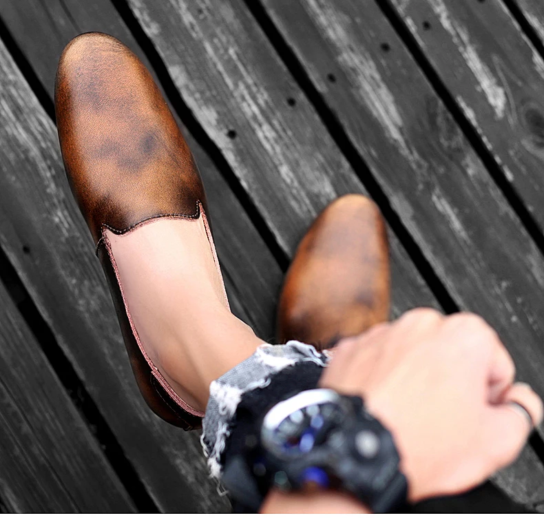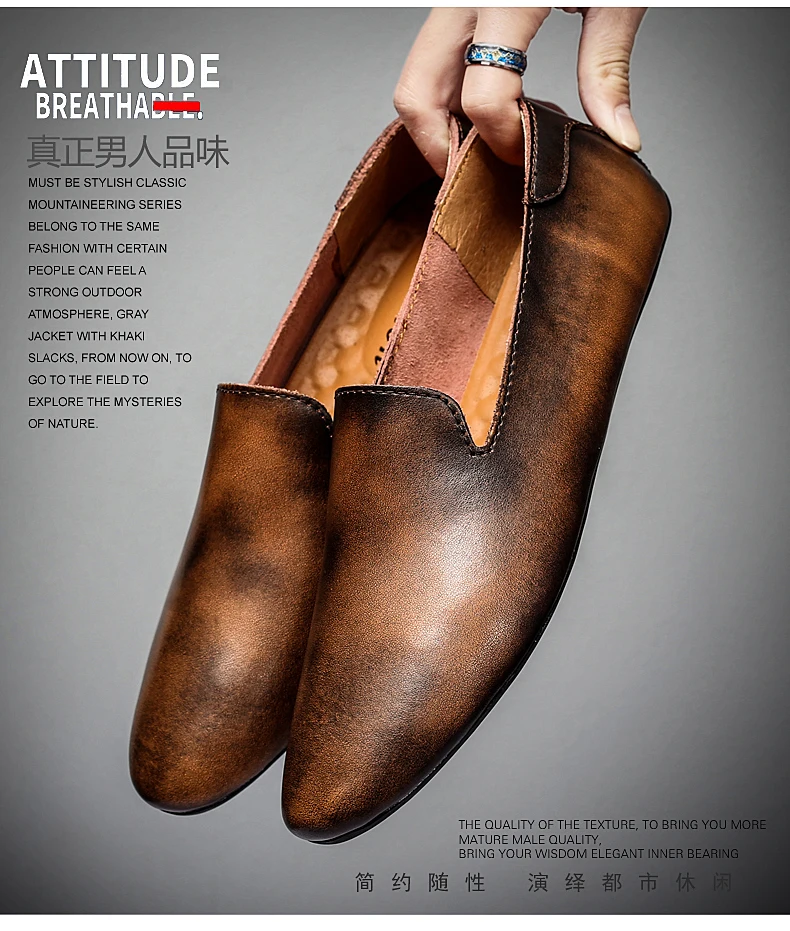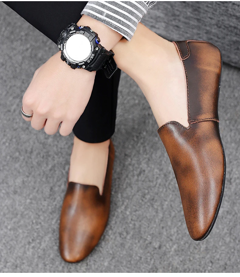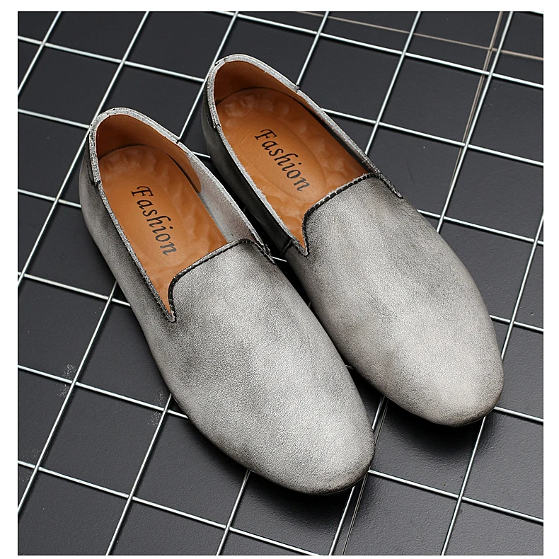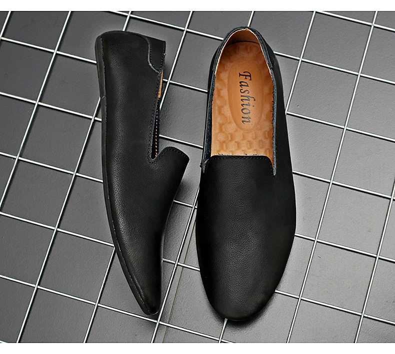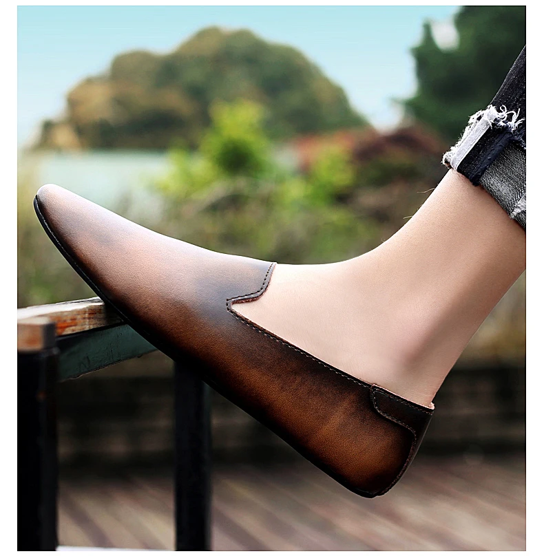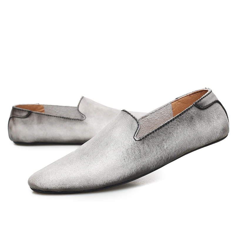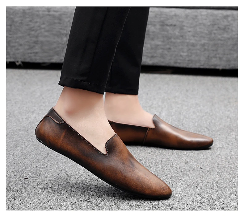 Новинка; Модные мужские кожаные туфли на плоской подошве; Удобная мужская повседневная обувь; Мужские уличные прогулочные туфли без застежки; Обувь для вождения из спилка