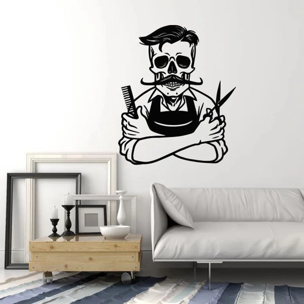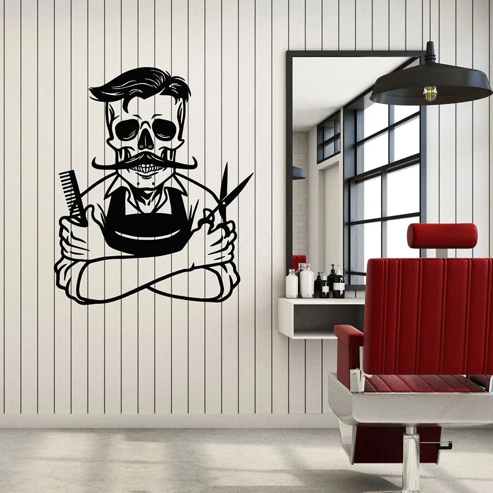 Скелет Парикмахерская Настенная Наклейка для украшения парикмахерской Виниловая наклейка для парикмахерской Настенная Наклейка самоклеящаяся художественная роспись для парикмахерской Y338