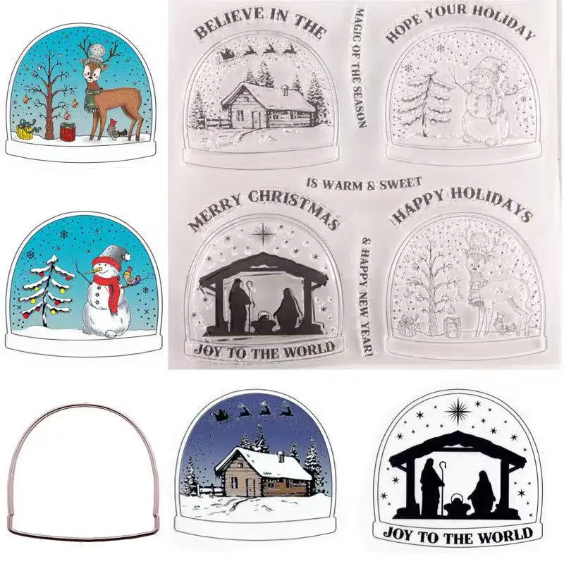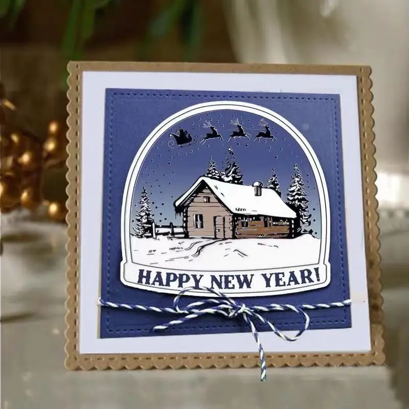 Зимний снег и олень сквозь дом земли мин штамп и набор штампов Сделай Сам Скрапбукинг Искусственная резина металлическая высечка Подарочная открытка