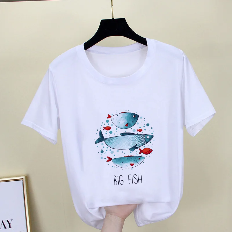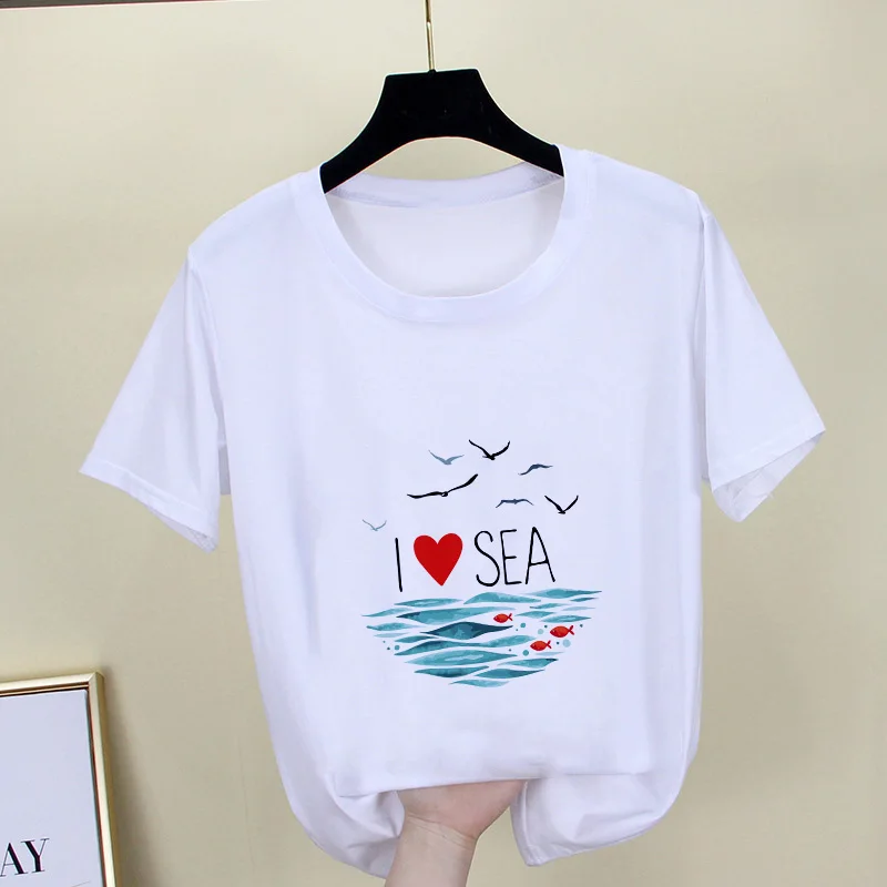 Женская футболка Harajuku, Белая Летняя футболка с морским принтом,...