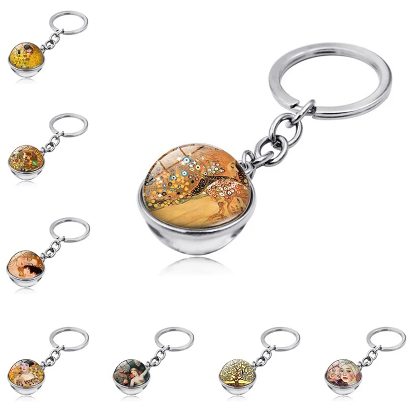 Металлический брелок Gustav Klimt с изображением дерева жизни цветов сада поцелуй двусторонний стеклянный шар брелок для ключей подарки для любимых