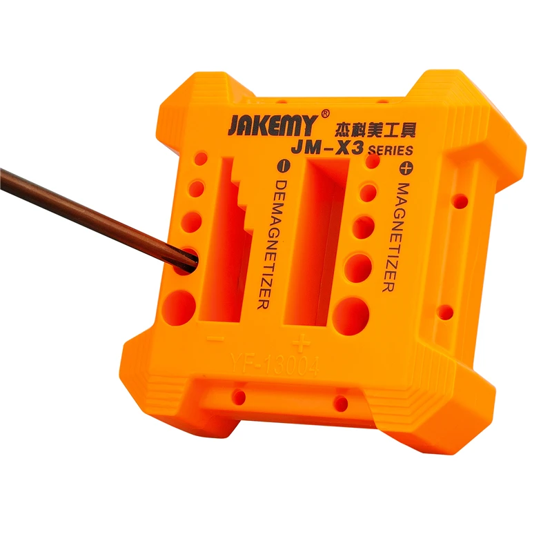 Можно повторно намагнитить отвертки, чтобы они могли захватить небольших винтов. Размагнитить ваши отвертки, чтобы безопасно работать на чувствительной электроники. Альтернативный намагниченности направлены sa много раз, как вам нравится. Для того чтобы намагничивать, вставьте конец наконечник в "можно повторно намагнитить" отверстие. Для того чтобы размагнитить ваши отвертка, неоднократно тянуть по всей длине отвертка через «размагнитить "отверстие.