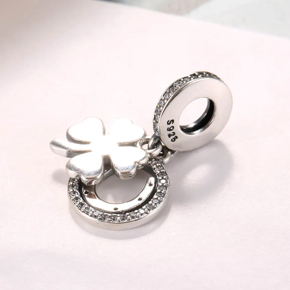 Шарм-подвеска Счастливый день для браслетов Pandora, Аутентичные серебряные бусины в виде клевера S925, ювелирные изделия сделай сам