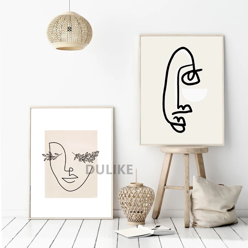 Однолинейный плакат с изображением лица, Минималистский плакат с изображением женщины, Однолинейный рисунок, нейтральный рисунок на стену, Картина на холсте, Декор для дома и комнаты