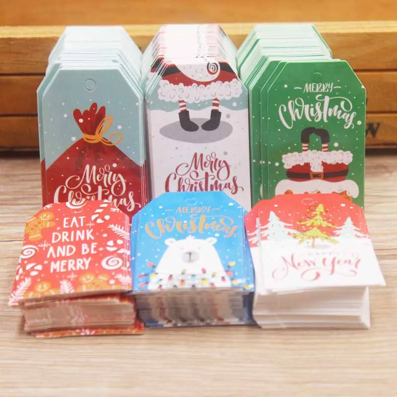Рождественские бирки, 100 шт., 5*3 см, карточка из крафт-бумаги, Подарочная этикетка, бирка сделай сам, подвесные бирки, украшение для подарочной упаковки