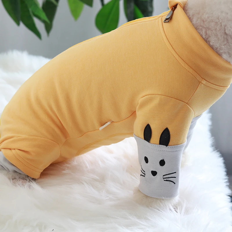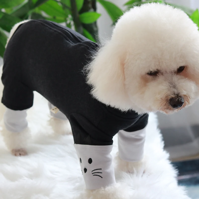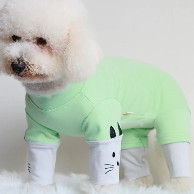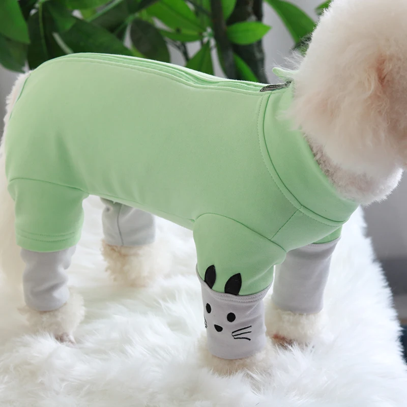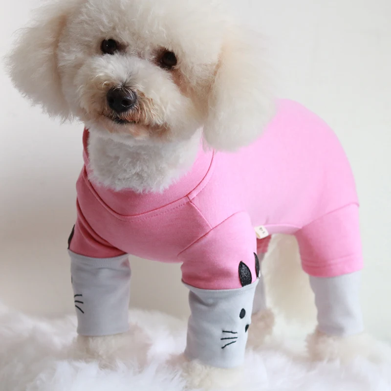 Осенне-зимний комбинезон для щенков из чесаного хлопка, с длинным рукавом, защищает живот, для маленьких собак, комбинезон для собаки