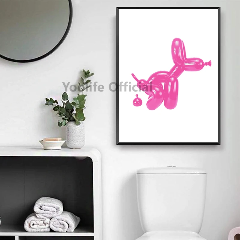 Воздушный шар с принтом собаки, современный плакат, настенный Декор ванной комнаты, туалетный знак, Popart принты, украшение дома, современное искусство, картина