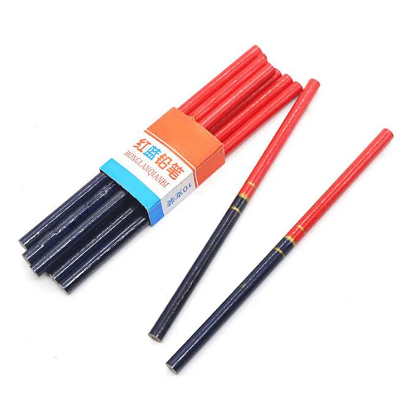 10набор двухцветных синих и красных круглых столярных карандашей для офисных чертежей, маркеров, инженерных деревянных ручек