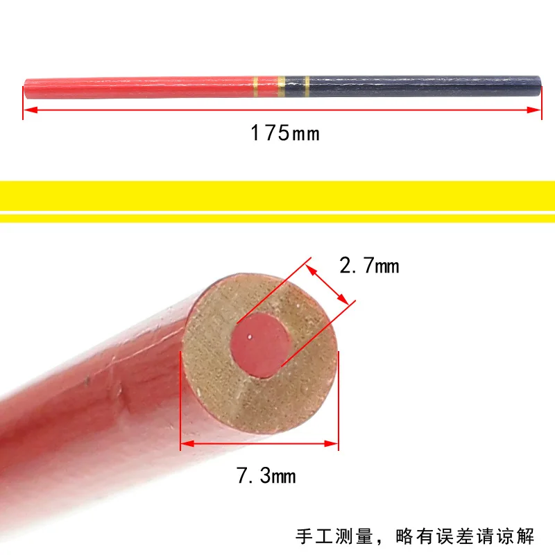 Карандаши включают в себя много типов в зависимости от приложения и пользователя. Карандаши, используемые работниками по дереву, в основном предназначены для рисования, один-красный, один-синий, а общая длина-175 мм.