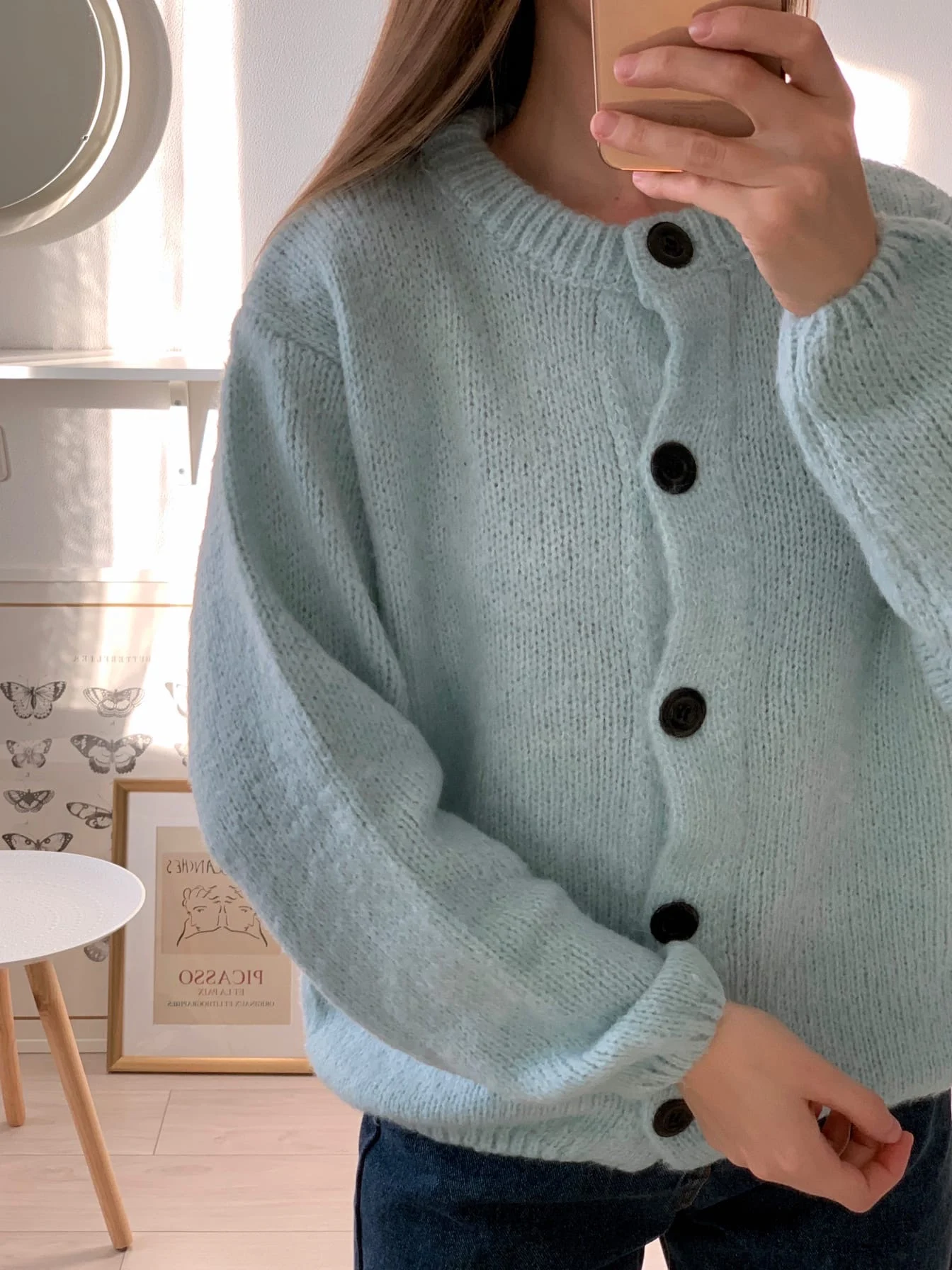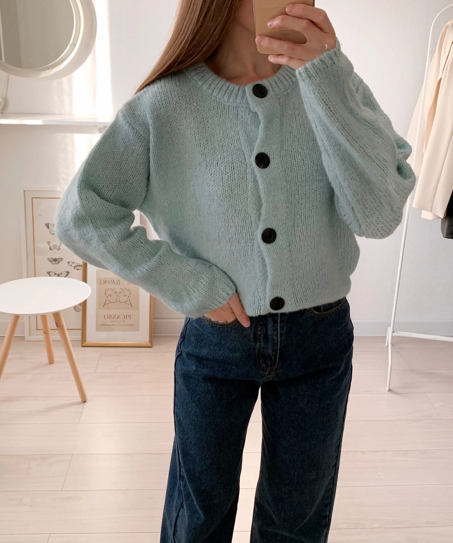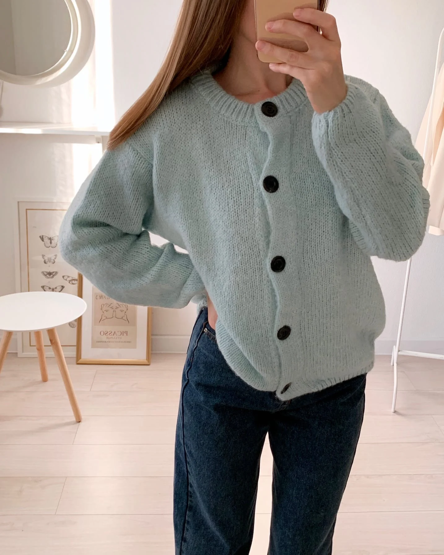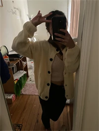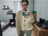 Хорошая кофточка, очень мягкая и приятная. На xs хорошо села, смотрится как оверсайз. Пришла быстро, за 14 дней. из минусов только то, что в составе синтетика, но надеюсь кофта будет греть в холода