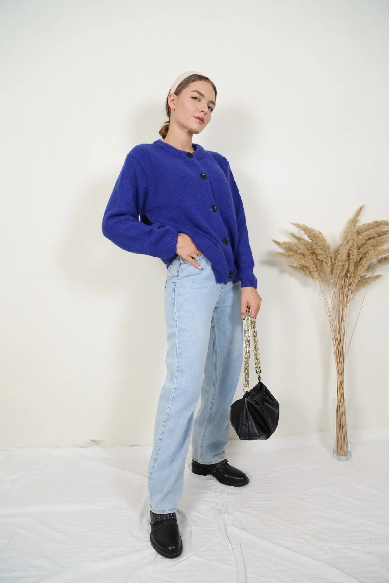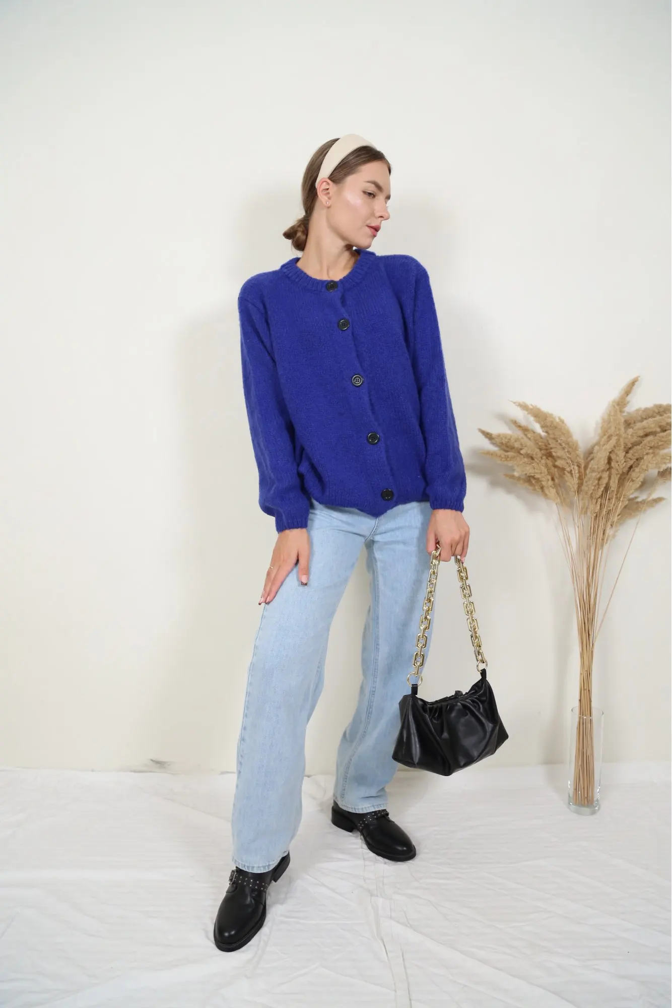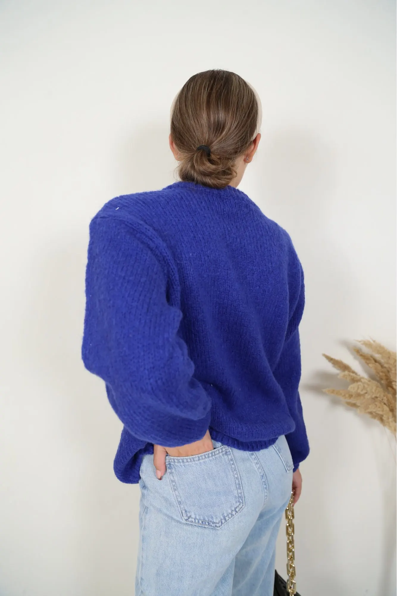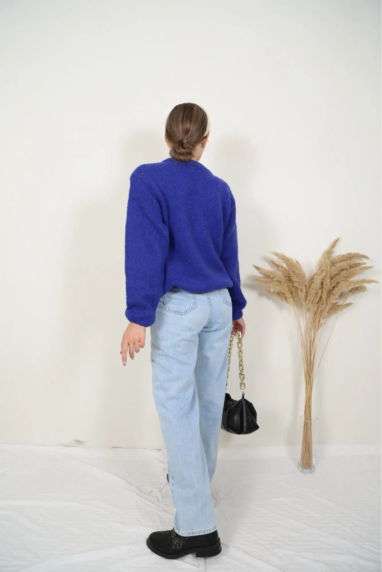 Темно синяя кофта очень понравилась! Объемная, теплая. На размер M оверсайз, но села очень хорошо.