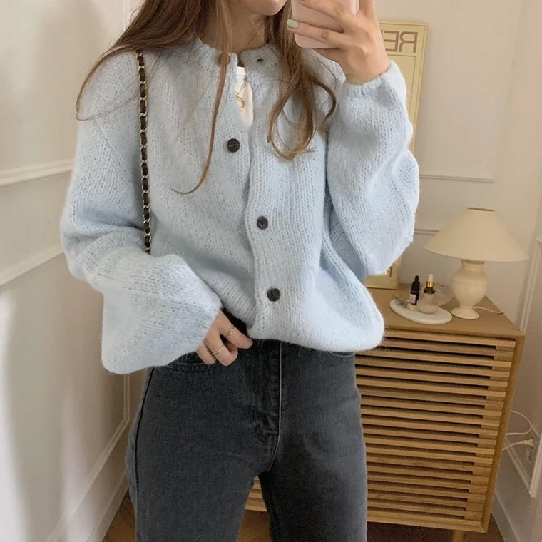 Женские свитера, кардиган оверсайз, вязаный свитер осень-зима, винтажные пуговицы, белые кардиганы, женские вязаные свободные с длинным рукавом