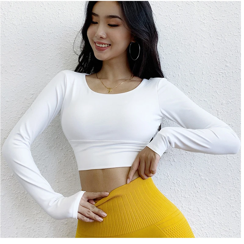 Женский бесшовный спортивный Топ с длинным рукавом и мягкой спинкой-крестиком, Однотонная рубашка для йоги, топ для спортзала, женский сексуальный костюм для фитнеса, женская рубашка для бега
