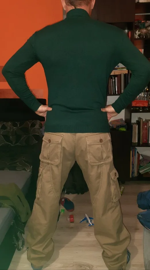 Штаны плотные, мягкие, много карманов. Но немного великоваты. Продавец или я немного ошиблись с размером. Но ничего, постирать и усядутся.