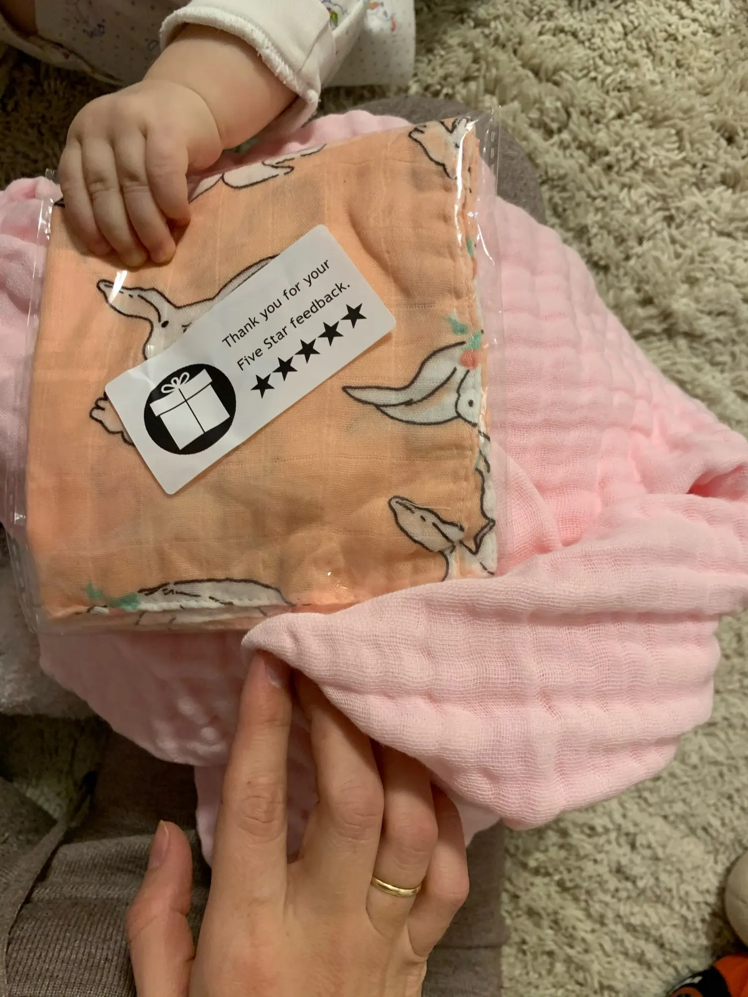 Быстрая доставка! Одеяльце ооооочень мягкое и воздушное. Не большое, что в самый раз для недавно родившегося ребёнка.