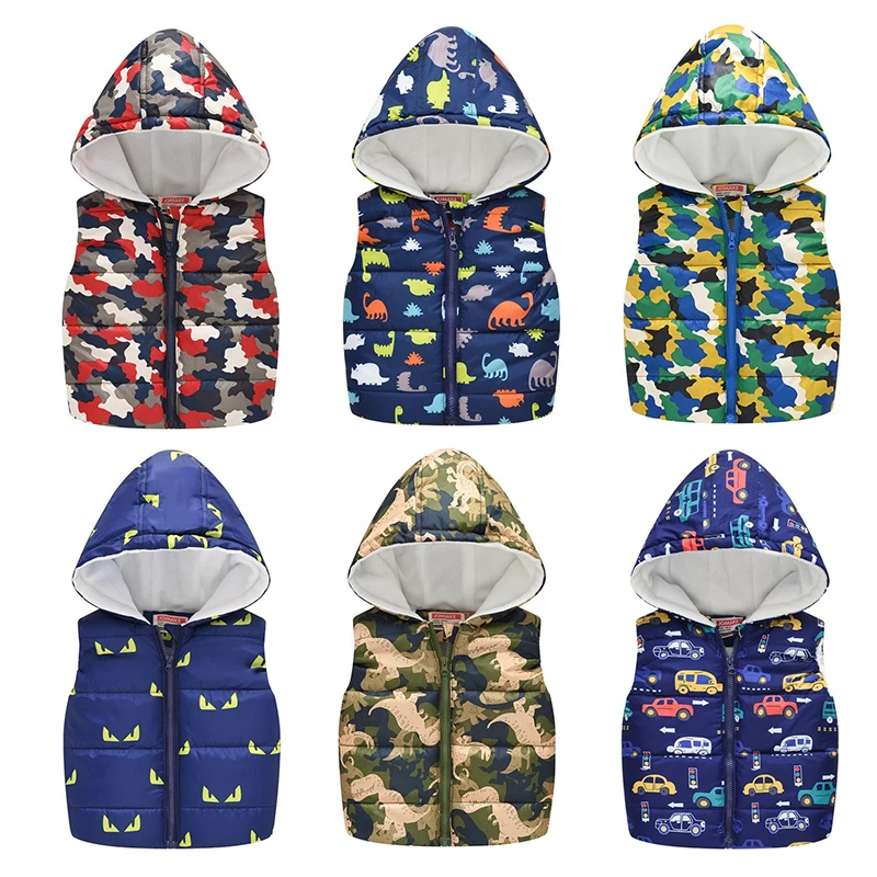 Теплый жилет для мальчиков и девочек, флисовый жилет, Осенний жилет для маленьких мальчиков, жилет для малышей, детская зимняя куртка без рукавов, автомобильный динозавр