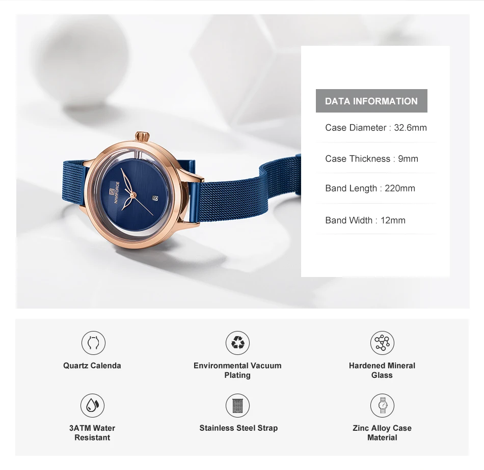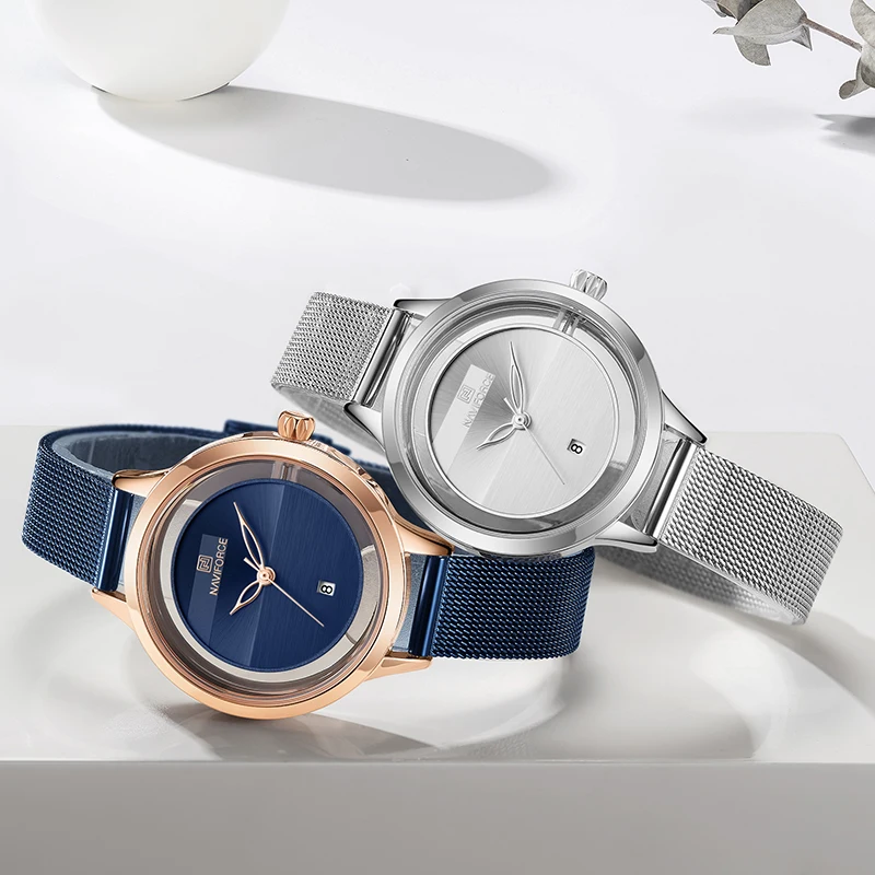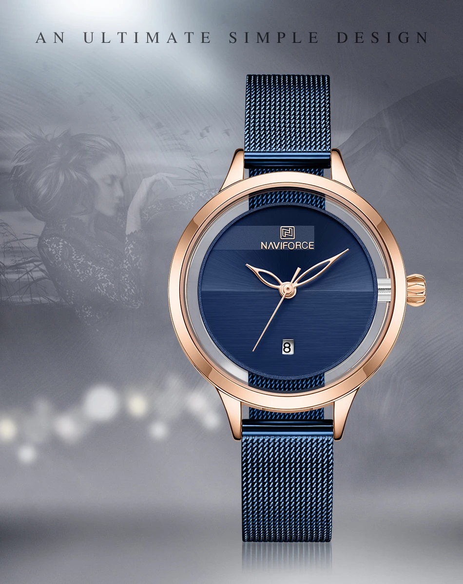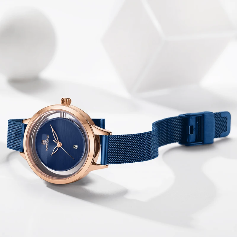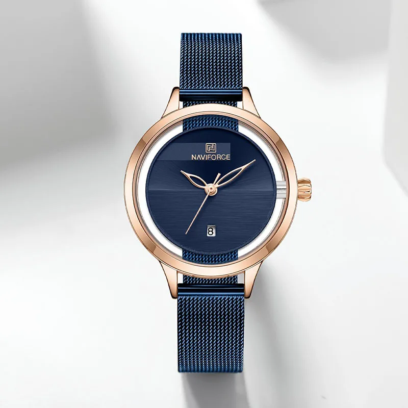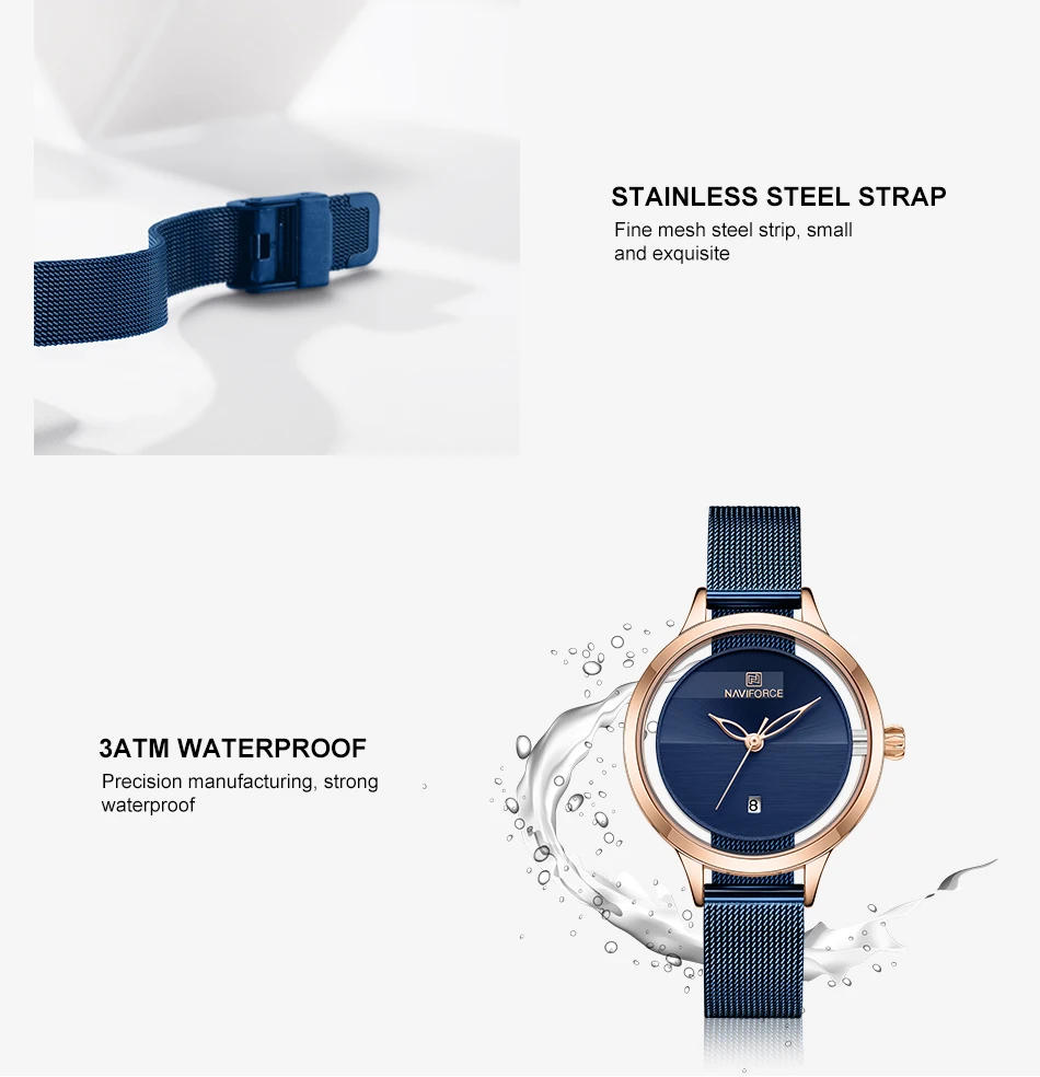 NAVIFORCE ЖЕНСКИЕ НАРЯДНЫЕ часы люксовый бренд Дамские Кварцевые часы из нержавеющей стали с сетчатым ремешком повседневные наручные часы-браслет reloj mujer