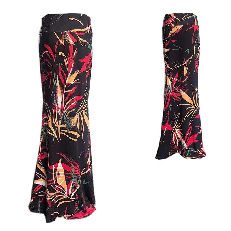 Юбка женская стрейчевая с цветочным принтом, длинная Этническая туника в стиле инди, с завышенной талией, в полоску, размеры до 3xl