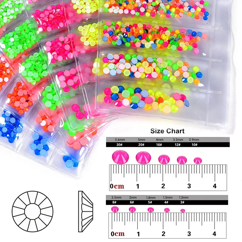 800 шт. смешанные размеры неоновые стразы без горячей фиксации SS6-SS20 стразы стеклянные украшения для дизайна ногтей стразы с плоской задней поверхностью B1353