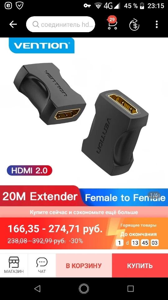 Разъем получил.Все отлично.Соединил 2 шнура HDMI,один 5 метров,второй 2 метра .Все работает отлично.С момента заказа до получения,Саранск-прошло 14 дней.Продавца рекомендую.