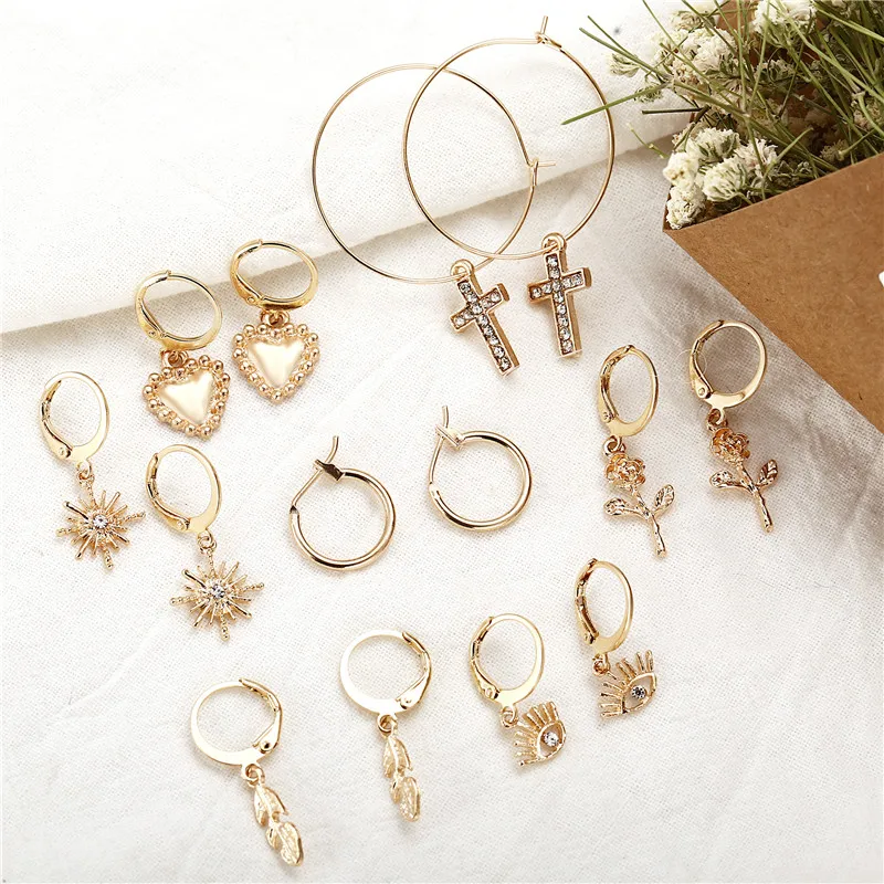 Комплект женских серег-подвесок 17KM в стиле бохо, винтажные серьги-подвески золотого цвета, с разными серьга геометрической формы глазами, крестом, звездой, кольцами, ювелирные изделия для женщин, 2020