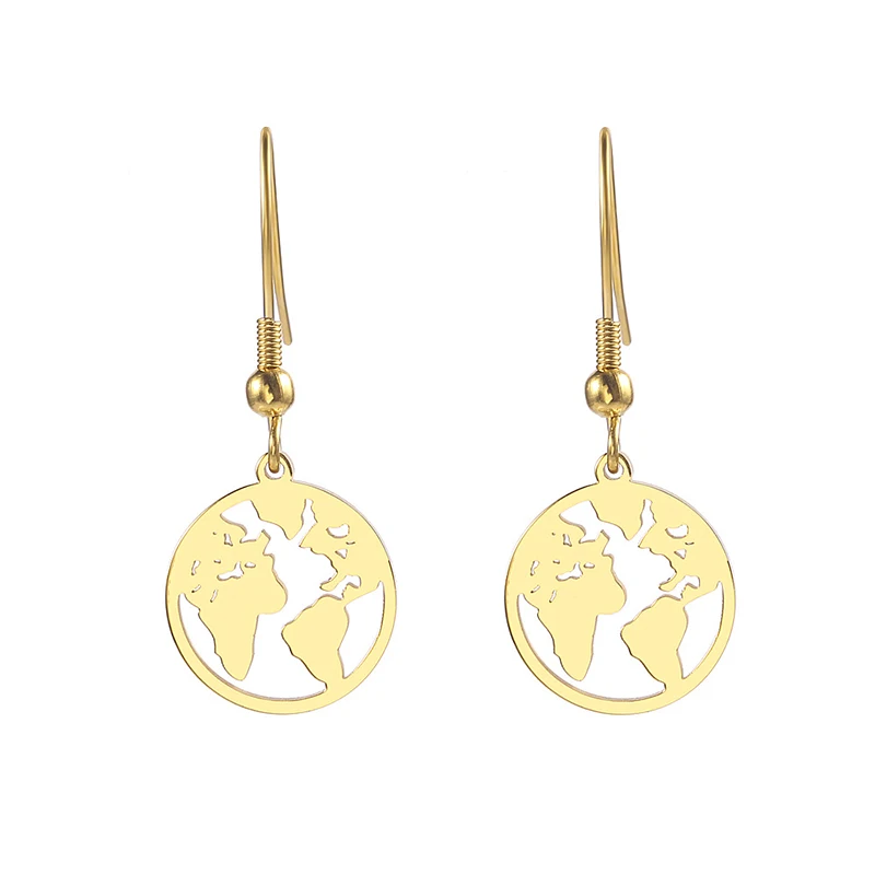 Серьги-гвоздики женские круглые, геометрические, с картой мира