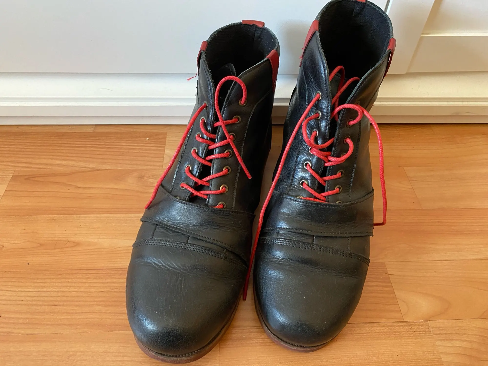 Шнурки отличные, цвет, длина соответствуют описанию. Покупала под эти ботиночки, в принципе нормально подходят, но я надеялась, что они будут немного отличаться от фото продавца и будут темнее, но продавец разместил достоверные фото. Доставка 1,5 месяца без отслеживания по России.