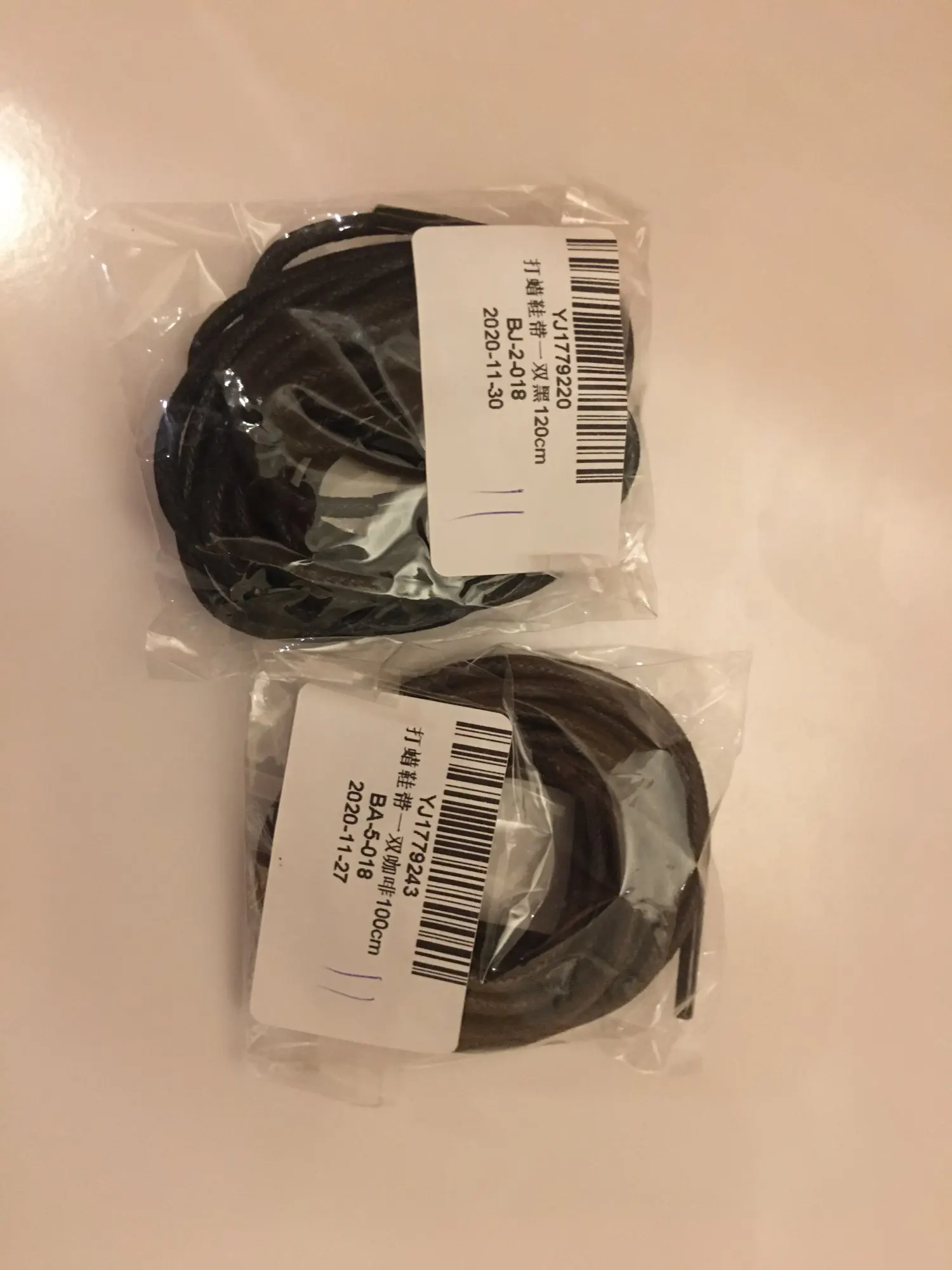 Товар пришел очень быстро за три недели. Шнурки качественные от дорогих магазинных на первый взгляд не отличаются. Продавец порадовал