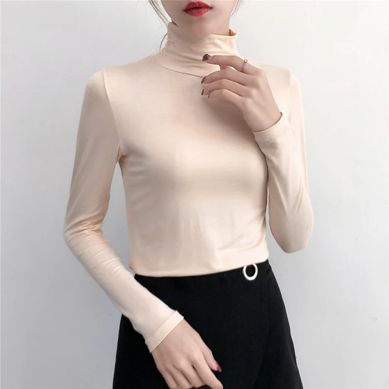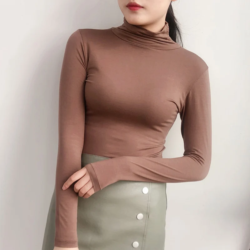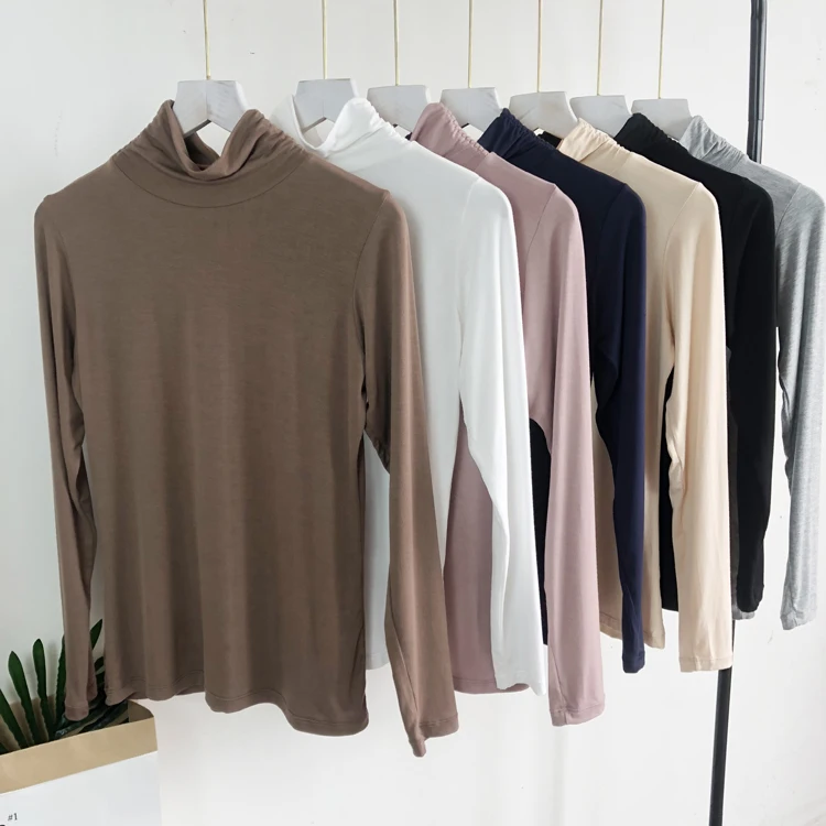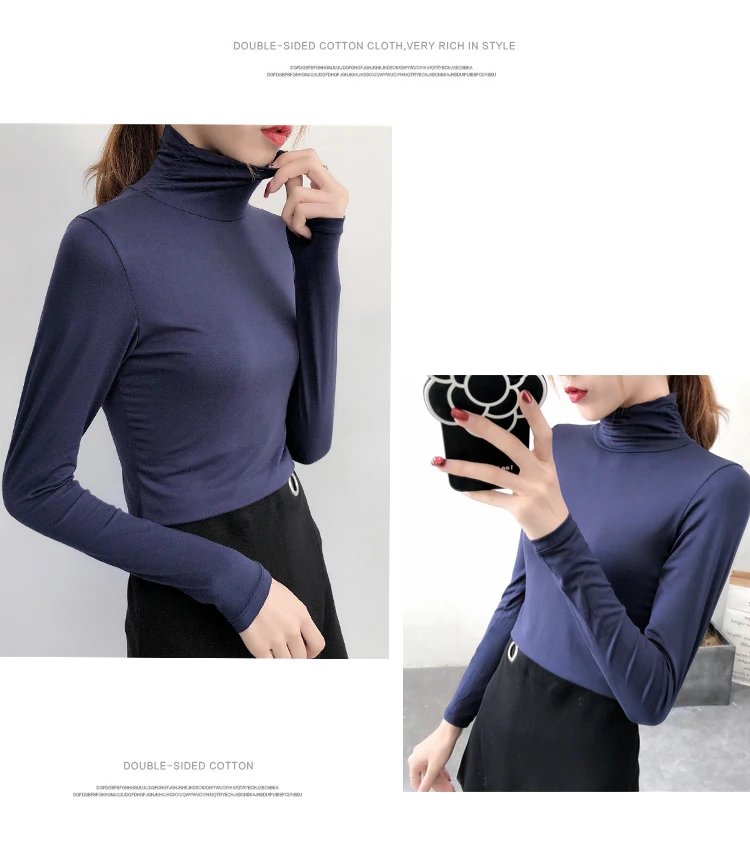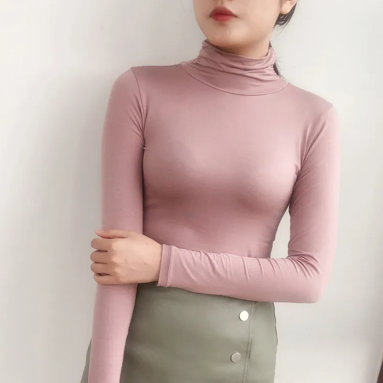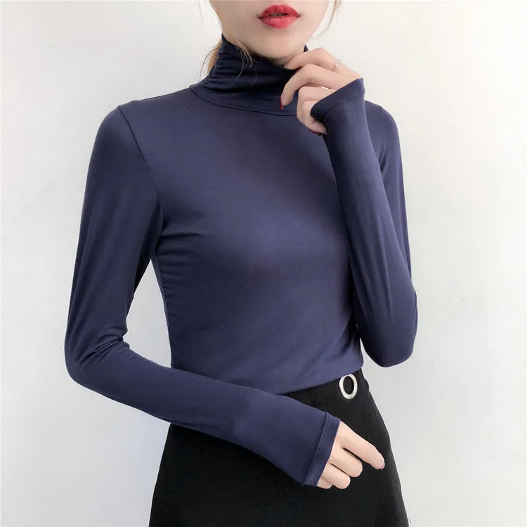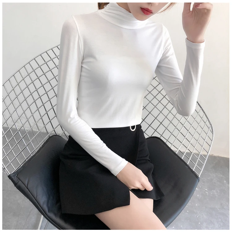 Новинка 2019, Женская Модальная рубашка с полувысоким воротником на раннюю осень, рубашка с длинными рукавами, облегающая женская рубашка