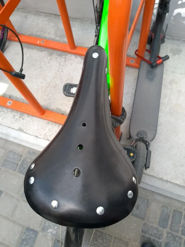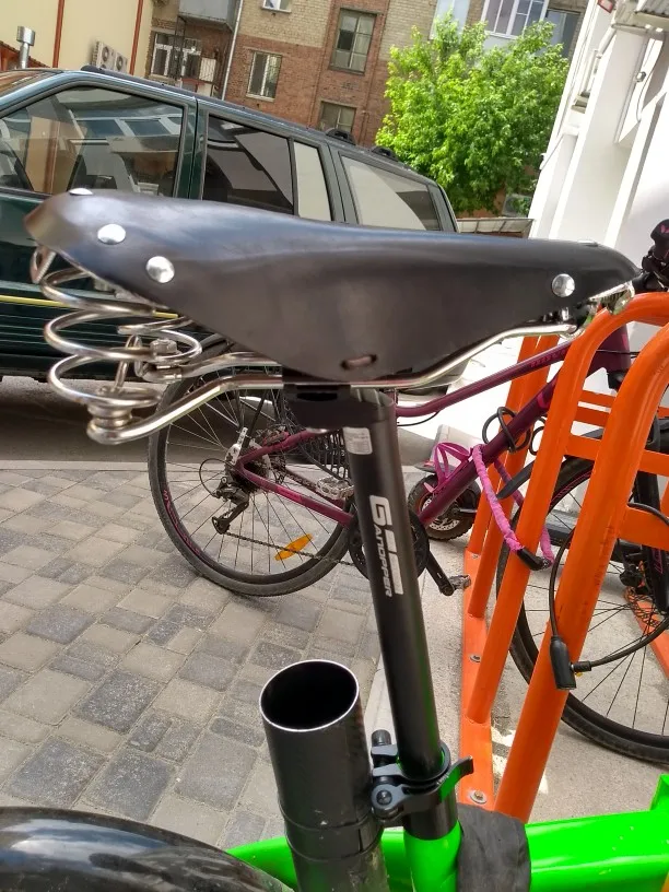 Хотите дорогую, долгую и неудобную доставку? Выбирайте ДПД. Переносили доставку 5 раз, а курьер все равно приехал когда захотел, а не в указанный временной период. К продавцу в плане доставки претензий нет, он свою часть отработал нормально. Относительно самого седла. Видно что ручная работа и при этом не самая аккуратная: заклепано чуть криво, вентиляционные отверстия пробиты не по центру. Кожа толстая, окраска не очень равномерная. Седло твердое, аммортизация чувствуется, есть небольшая раскачка при педалировании (мой вес 72кг). В целом за указанную цену вполне нормальные седло. Свои функции выполняет, при этом хочется верить, что не будет сильно привлекать воришек.