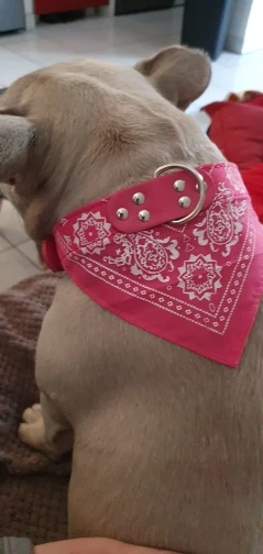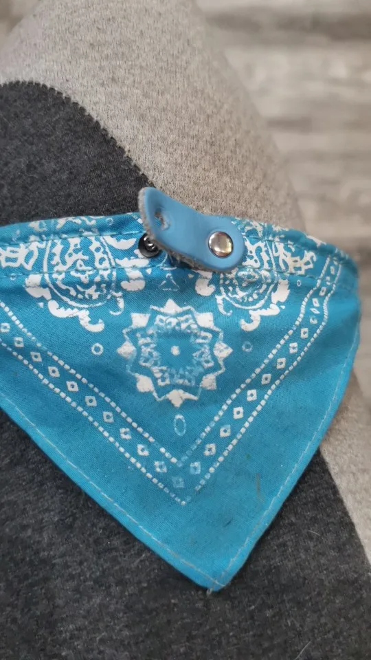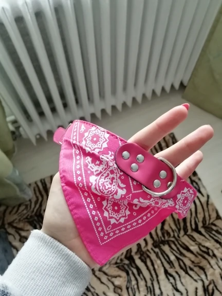 Очень милый воротник, размер хороший. После ношения в течение нескольких недель белый принт на бандане немного выцветал.