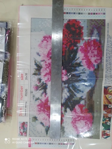 Картина в порядке, но не хватает измерения 20x30, но он намного меньше, потому что у него есть кусок белого цвета вокруг китайских букв и цветовых номеров, я не вижу его хорошо, что они обманывают с измерениями