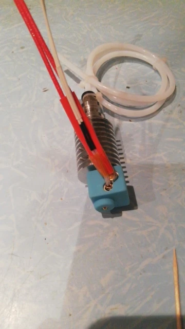 Боуден лучше сразу менять ну или ровно подрезать, в хотэнде рез был под углом. силиконовый чехол задевает пластик, видимо не под это сопло. в целом не хуже родного. резьба сопла замазана, на мой взгляд это лишнее
