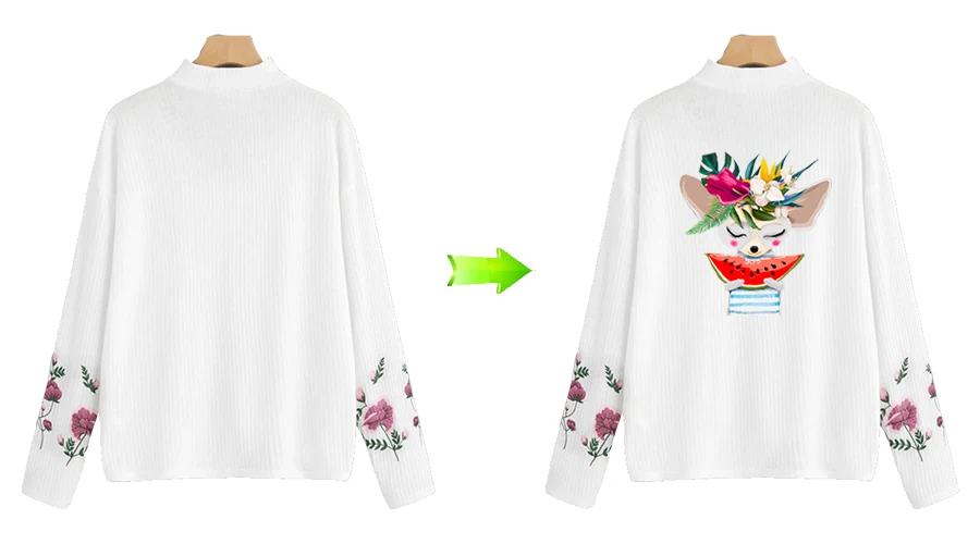 Для теплопередающей машины1, Установите температуру тепловой пресс-машины.2, Разложите одежду на гладильной доске.3, Включить режим теплопередачи.4, Крепко надавите руками на 10 секунд.5. Левая Анда, рваное животное.6, Узоры присутствуют на одежде.
